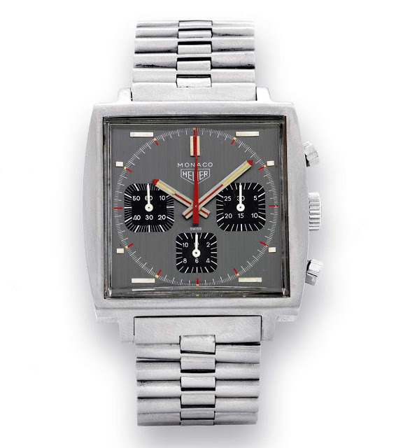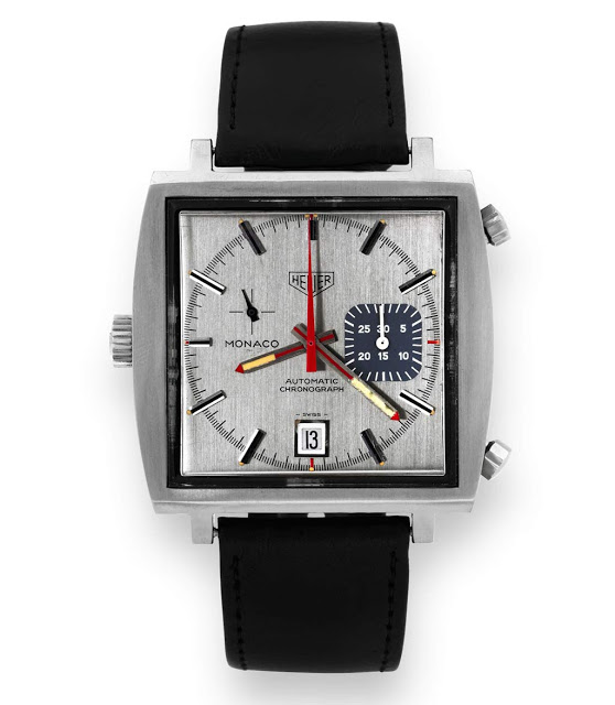 By 1969, the company has already built a solid sporty image and this allowed for the creation of the iconic Monaco. The original Monaco was innovative using a unique square case design. Furthermore, it was the result of the partnerships between Jack William Heuer, a great-grandson of the company founder, Buren (expert on innovative thin automatic movements), Dubois Depraz (the leading specialist in the development of chronograph modules and other complications at this time) and Breitling (shared funding for the Monaco project). The Monaco sports a modular automatic chronograph built on a Buren base movement that includes the self-winding and calendar mechanisms with an independent Dubois-Depraz chronograph module secured to the watch by three screws. It has 19,800 vibrations per hour reaching 42 hours of power reserve.