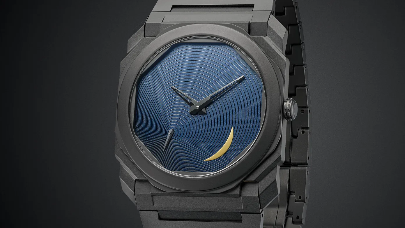 Premiering now at Watches and Wonders 2021 is the new Bulgari Octo Finissimo Tadao Ando, one of the most artful creations from a big brand at the show. The new Octo Finissimo balances a spiral with the moon, all based on a watch that is exciting and artful in its own way. It’s an excellent balance between the mystery of the moon and the sharp, definite angles of the octagonal case.