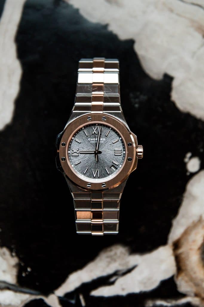 At launch, the Alpine Eagle collection consists of 10 references in steel, gold or gold set with diamonds plus gold/steel. The last one is my preferred model of the bunch because the warmness of the 18 ct. gold contrasts rather well the coldness of the steel. Three of them are sized with a diameter of 41 mm and 9.7 mm thickness while the remaining members of the bunch are sized at 36 mm in diameter and has a thickness of 8.4 mm. I’d be inclined to consider the latter as oriented towards females while the former seems to be oriented towards a male audience. Chopard has, however, categorised all 10 references as unisex.