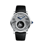 However, it’s not the case that’s the real showstopper here, although it is quite wonderful. It’s what sits on the dial that is the real standout feature. The dial on this particular piece is finished in white gold and black, with lumina throughout to ensure clear legibility. Also present on the dial is a fantastic moon phase indicator between 3 o’clock and 4 o’clock. The date is displayed using the outer ring of the 12 o’clock subdial, with small seconds on the inner part of the sub dial. The day display, however, is situated on the outer ring of the sub dial at 6 o’clock, with the chronograph hours on the inner side of the sub dial. Lastly, the month is indicated on the outer ring of the 9 o’clock subdial, with chronograph minutes on the inner dial. That’s not where it stops, however, with the centre of the sub dial displaying another indication, that for leap years. The month “NOV” and the number “15” from the minute counter are coloured in red, symbolising November 15, the date and the year of the Only Watch Charity Auction (a very clever little homage).CarlFBucherer-3-768x1024