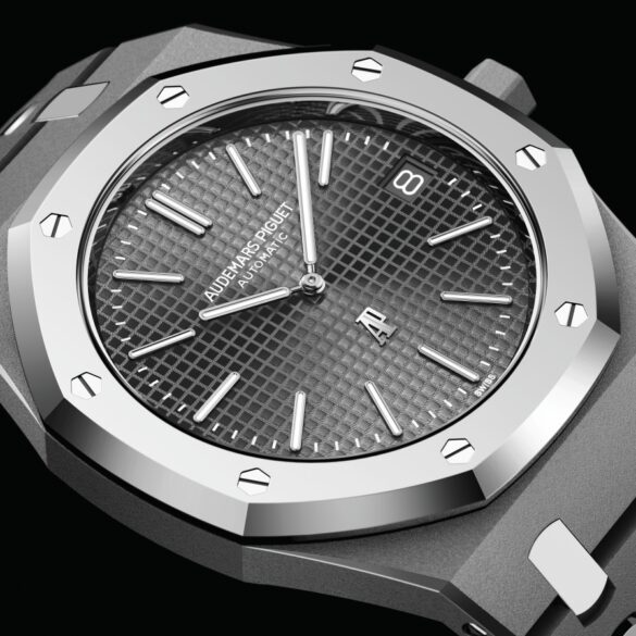 The Only Watch 2021 Audemars Piguet Royal Oak 15202 Jumbo features a titanium and palladium based construction.