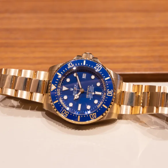 A hefty 18k yellow gold case gives this Deepsea a wallop of bling.