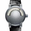 Marble isn’t new to the industry as luxury brands like Rolex and Jaeger-LeCoultre have toyed with it, along with more affordable players like fossil that use marble-like substitutes. The black marble dial on the Monsieur Marble Edition is unique with its dark color as most are shades of white. It has an organic, almost gothic aesthetic that reminds me of a nighttime thunderstorm. It’s a perfect backdrop for the sophisticated dial elements that continue to impress after five years. A large jumping hour is recessed at 6 o’clock within an architectural frame with two exposed screws. Just above is a small seconds sub-dial that’s less recessed, followed by the large retrograde minutes. Unlike many retrograde indicators that arch at 180 degrees, this one is a full 240 degrees and it really enhances the look. The Arabic numerals also use a custom font designed specifically for the model. The marble base is actually three sections cut from a single piece, perfectly arranged to appear as a single, unbroken dial.