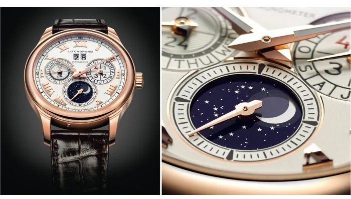 The Chopard L.U.C. Lunar One is a perpetual calendar with an orbital moon phase display. The moon phase display is positioned at 6 o’clock and exhibits the phases of the moon in with the precision of deviation of one day in 122 years.