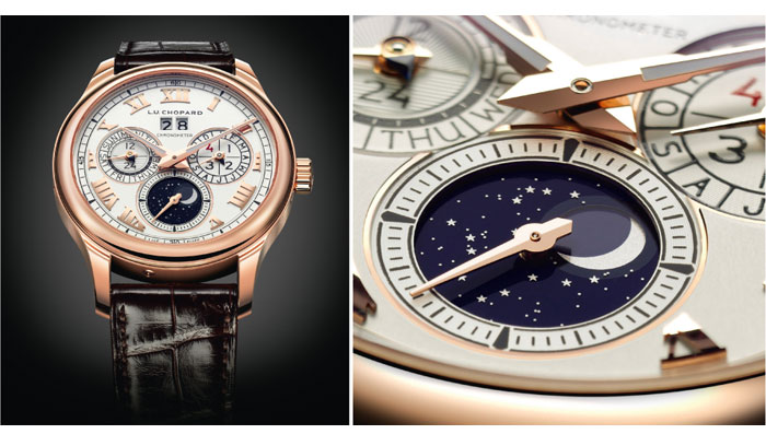 The Chopard L.U.C. Lunar One is a perpetual calendar with an orbital moon phase display. The moon phase display is positioned at 6 o’clock and exhibits the phases of the moon in with the precision of deviation of one day in 122 years.