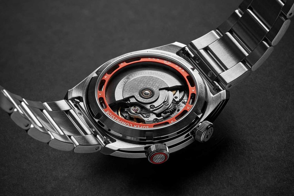 So, what makes a Super Compressor case special? In a nutshell, it is how it handles water pressure. The case features a spring-loaded case back that tightens the seal, increasing the water-resistance as the depth increases. Sounds intriguing, doesn’t it? The 41mm light- catcher stainless steel case is a modern take on the Super Compressors from the past. It uses an ultra-thin compression spring to achieve a depth rating of 150 meters using the principle explained above. The spring is just 300 microns thick, which is only four times the richness of human hair. What’s even more intriguing is that unlike the vintage Super Compressor cases, the one on these new C65 watches allows the wearer to admire the mechanism through an exhibition case back. The compression spring is placed within the orange compression ring that also has the ‘diving-bell’ mark, the logo Ervin Piquerez used to signify authenticity. Also visible through the case back is the beating heart of this watch which is the venerable Sellita SW200-1 automatic movement which operates at 4 Hz and offers a power reserve of around 38 hours.