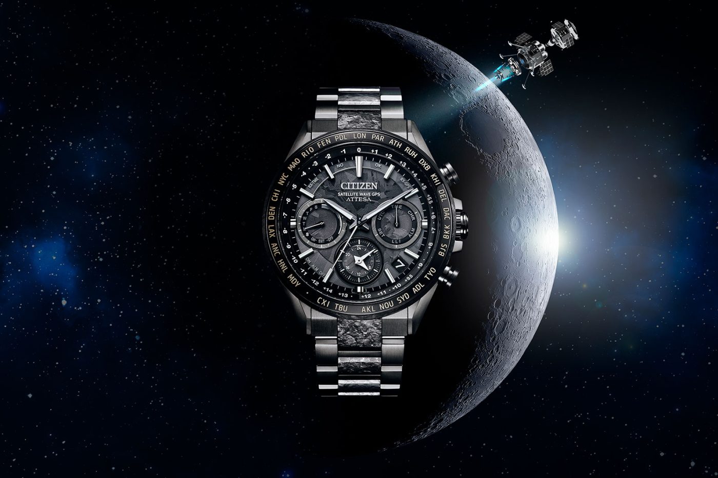 The ispace lander will use Citizen’s Super Titanium for its legs, so why not have a slick commemorative watch to boot. Not only is the case and bracelet Super Titanium, but sections have a special finish known as Recrystallized Titanium that’s heated to a high temperature and quickly cooled. This creates a moon-like texture that perfectly fits the theme of the watch. Citizen went a step further and added a Duratect DLC coating (carbon-based layer) to make it harder and much more scratch-resistant. The dimensions are large with a diameter of 44.3mm and thickness of 16mm, but there’s a lot going on with this piece, so the size is arguably necessary. Flip the watch over and the case back has a detailed print of the ispace lunar lander against a deep black background. The titanium bracelet integrates perfectly with the case and has Recrystallized Titanium center links to match the texture on the lower bezel. Water resistance is rated at 100 meters.