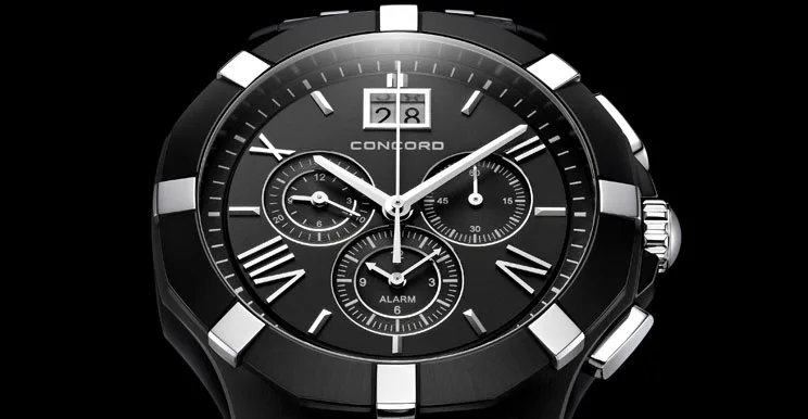 Maintaining the integrity of the original Saratoga Chronograph design, the new Concord Saratoga Chronograph houses larger counters, big date and crystal clear Roman numerals in its 42 mm diameter case, providing an ideal complement for its easily recognizable eight-sided signature bezel.