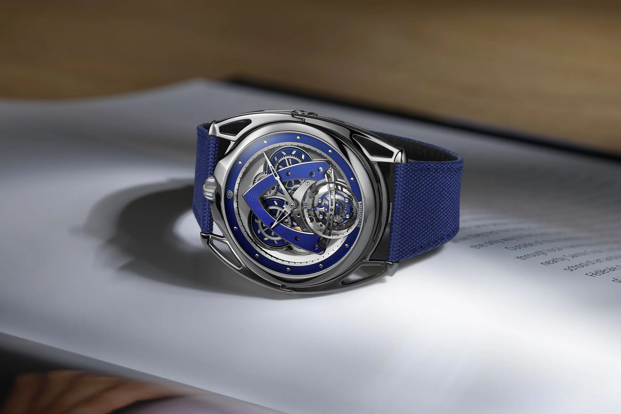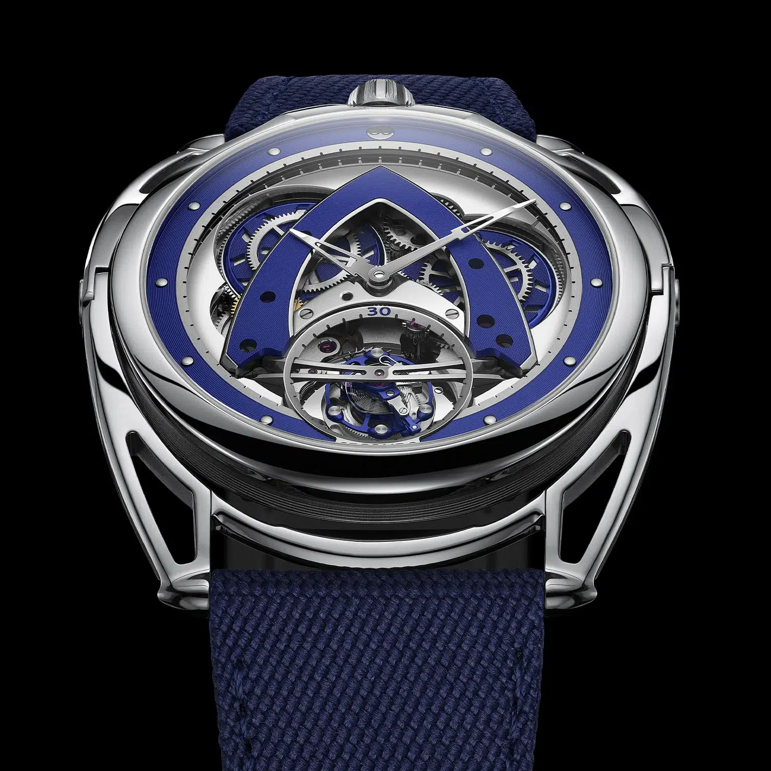 A titanium build 30-second tourbillon is at 6 o’clock weighing just 0.18 grams. Found inside is the hand-wound Calibre DB2009V6 with 5-day power reserve. You can choose an alligator leather or a blue fabric strap. Limited to just 10 pieces, it’s priced at USD 210,000.