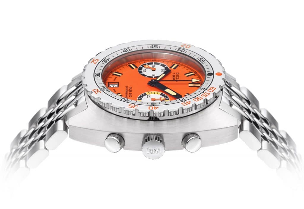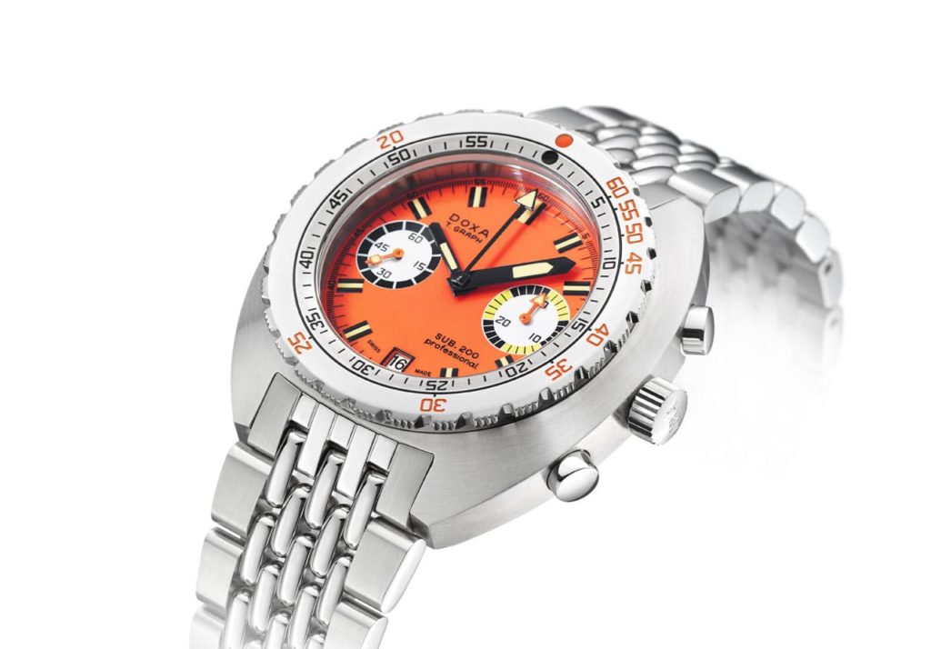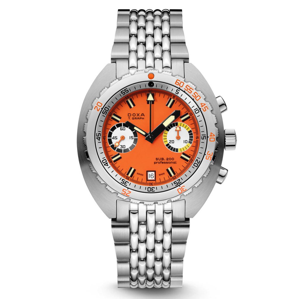 The Doxa Sub is a certified design classic that has undoubtedly earned its stripes over the years. First released in 1967, the Sub was appreciated by scuba divers for its rugged case, solid Valjoux movement and its orangeness. It also had a dual purpose rotating bezel, with two different scales on the bezel, one for the chronograph and one for dive timing. The SUB 200 T.Graph limited edition is a faithful nod to the original, a design which has remained the same for 50 years after having a slight re-design in 1969.