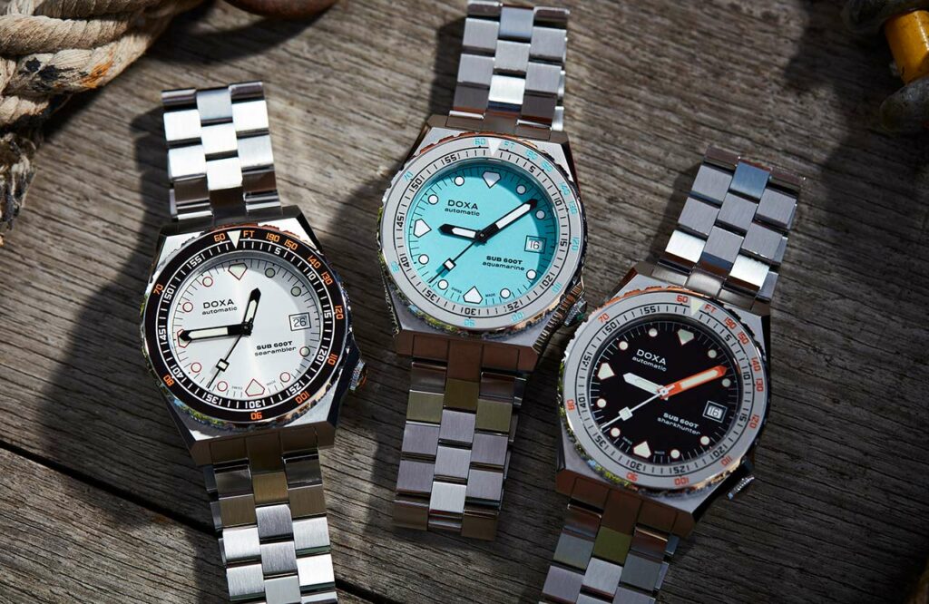 First launched by Doxa in the 1980s, the SUB 600T is an iconic model for the brand and this latest collection further demonstrates excellent engineering and design prowess. Prices are very reasonable for such capable dive watches, starting at CHF 1,350 with rubber strap or CHF 1,390 with steel bracelet (steel bezel insert) and climbing a bit to CHF 1,450 with rubber strap or CHF 1,490 with steel bracelet (ceramic bezel insert).