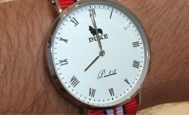 A classy and slim case design with a trendy strap. Beautiful elegance made for ladies and gents, but could be improved with a higher quality strap. For more info, please visit duketimepieces.com