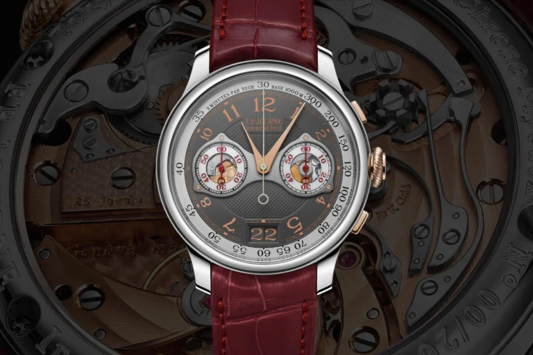 The new timepiece is a masterful fusion of titanium and 18k gold, a unique combination that not only enhances its visual appeal but also underscores the brand’s commitment to innovative design. With its comfortable dimensions of 40mm x 10.40mm, and adorned with a burgundy-coloured alligator leather strap and an 18k gold buckle, this watch is a testament to F.P. Journe’s dedication to creating wearable luxury.