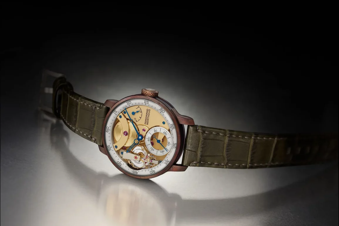 This particular piece is based on a creation from 1793, the No 26 decimal watch, which is on display in Fleurier, Switzerland, where Ferdinand Berthoud is based. The 42.3mm case of the watch is bronze and, before you moan, it has been pre-patinated. Some love bronze for the unique finish it will get over time, while others lament it for turning their wrists green along the way. There’s no real way to solve that other than not to use it at all, so Ferdinand Berthoud has pre-aged it for the buyer and the effect is delightful.