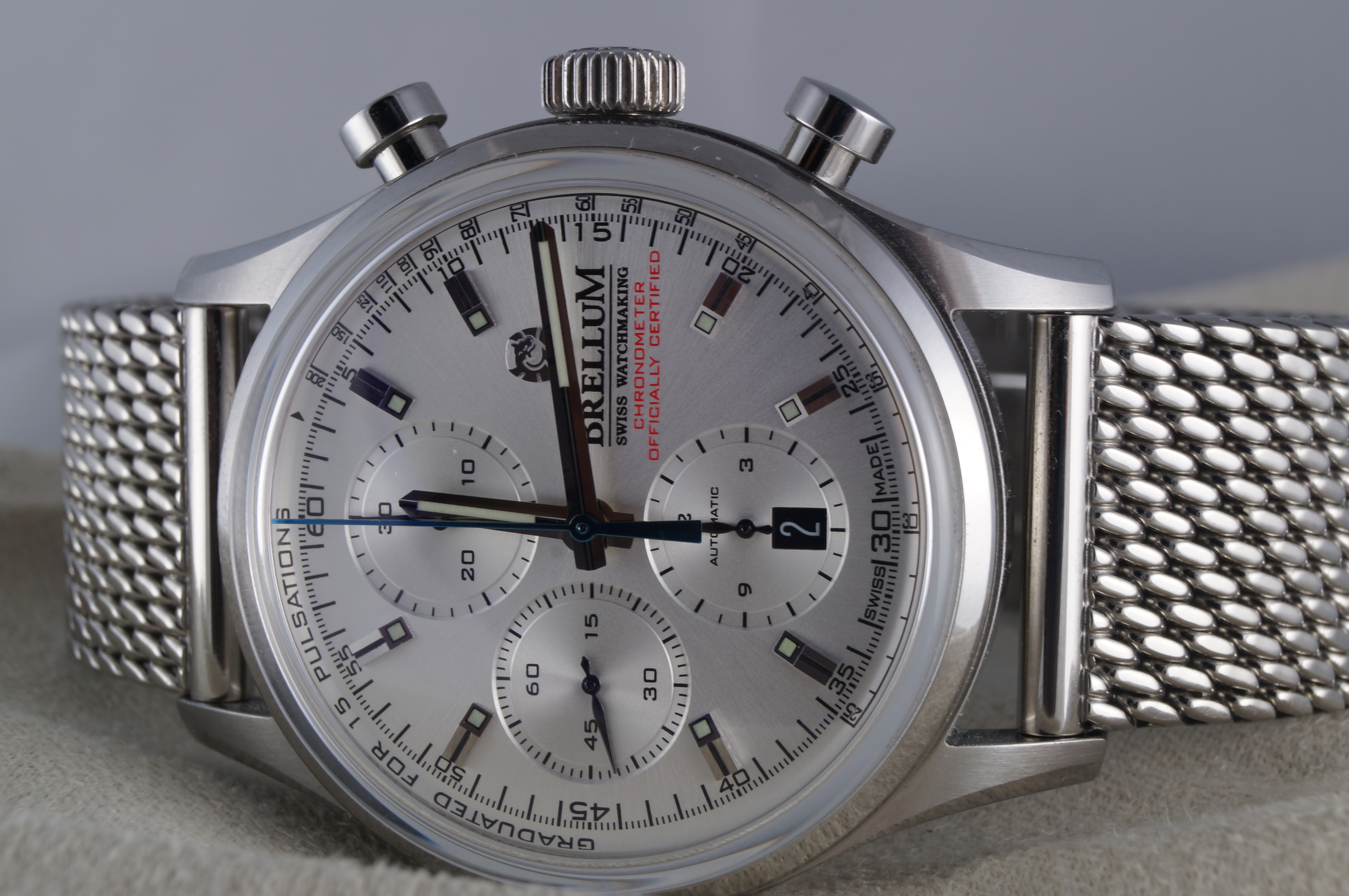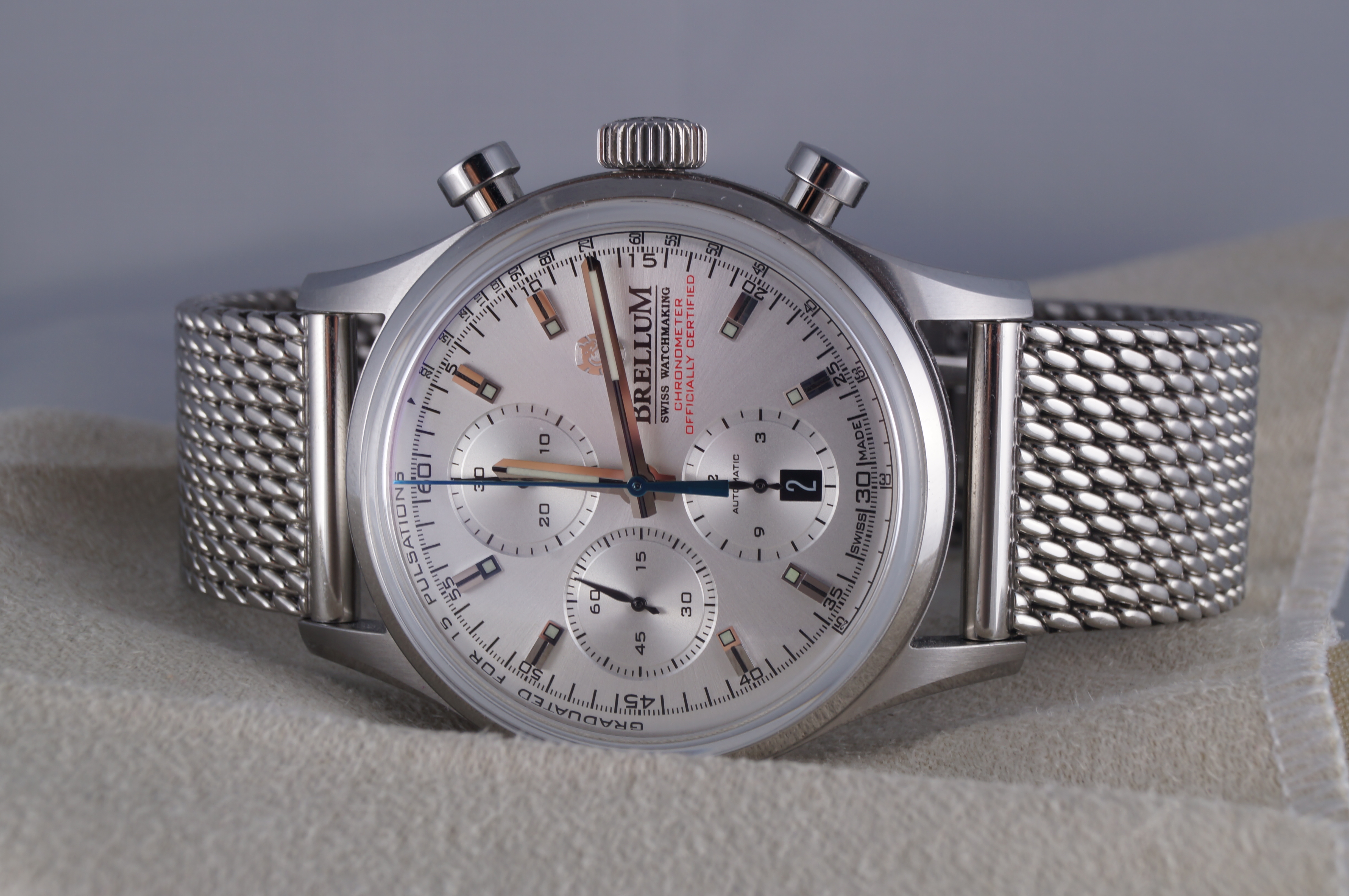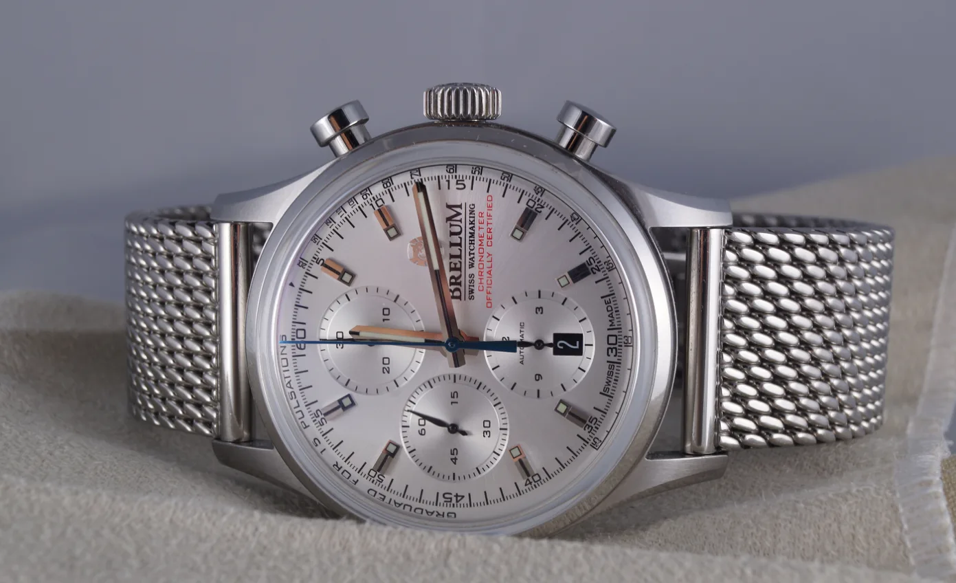 Furthermore, the Brellum Duobox Chronometer Chronograph Watch comes in various models: Silver dial, black or brown leather strap Silver dial, Stainless Steel Bracelet Grey Meteor dial, black or gray leather strap Grey Meteor dial, Steel bracelet Deep Blue dial, blue or brown leather strap Deep Blue dial, steel bracelet.