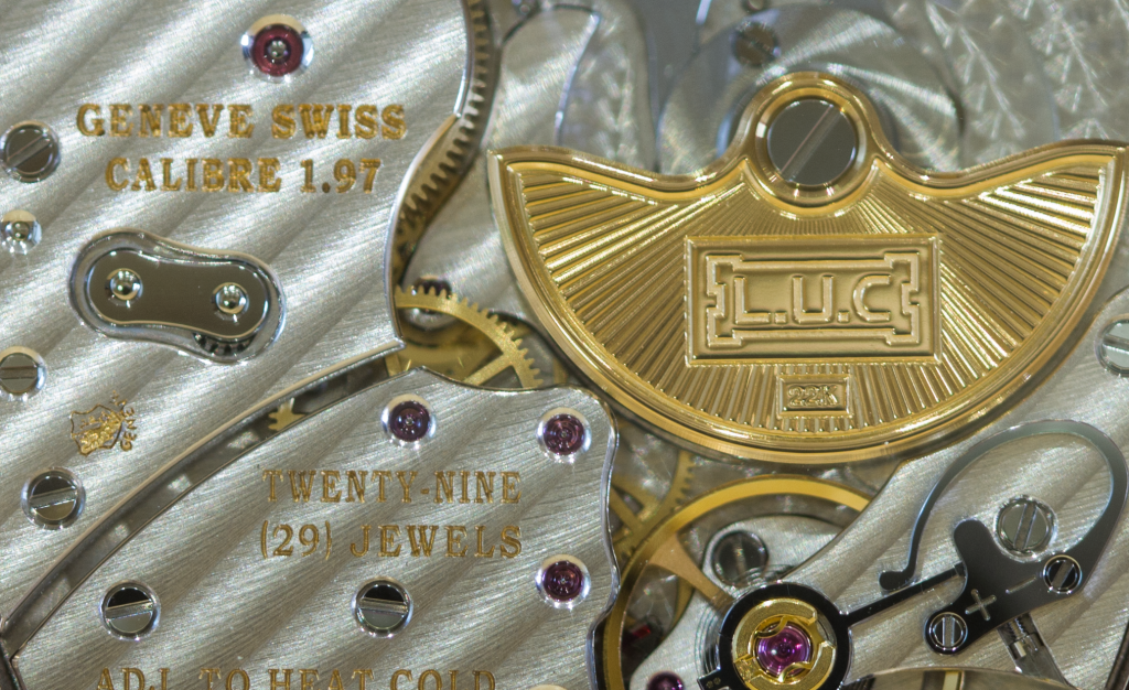 Because of the Geneva Seal on this watch the movement finishing has to be the best of the best, there is absolutely no room for error and the calibre L.U.C. 97-01-L looks all the better for it as well. The hand applied Côte de Genève and perlage under the micro-rotor on this timepiece are fascinating to look at under light, they bounce light around the case with extraordinary clarity, in fact every part seems to sparkle on it. Of course, that is in part thanks to that Geneva Seal which requires screw heads to be polished as well as chatons, even the swan’s neck regulator has been polished up nicely. Also, a little mention regarding decoration is the 22K gold micro-rotor, which has been given an awesome ridged appearance with a big thick polished border, pay attention Patek because THAT is how a micro-rotor should be done. If you’re in a certain Facebook group full of modern era enthusiasts this movement will be the cover photo for said group around the time of writing.