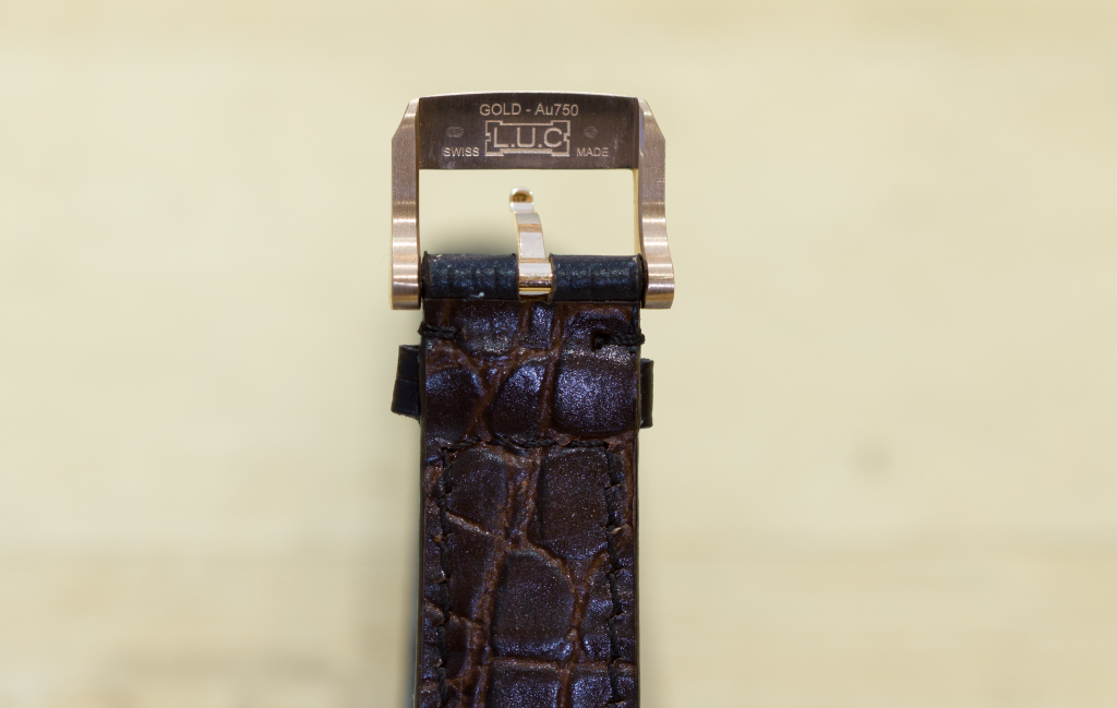 The strap on this watch is exceptional, Chopard puts a lot of effort into its straps, their materials and the overall design. This watch makes use of alligator leather, unusually that alligator leather is on both sides of the strap. Traditionally, the hard wearing alligator leather would go on the outside, while the inner would be a much softer calfskin leather, the only downside to that is calfskin is very sensitive to moisture. To ensure longer durability and resistance to perspiration, Chopard uses alligator on both sides of the strap, it’s an unusual feeling at first but in time you get accustomed to it as the strap begins to soften up and adapt to the curve of your wrist. The buckle is very nice too, it’s a simple 18K rose gold pin buckle just like the case, unusually though it has the L.U.C. logo on the front and the back. Intuition tells me this might be a subtle way of protecting against fakes as not many people will know it’s there (until now), but I won’t deny I had a small chuckle at the fact it might be because the older gentlemen wearing it might forget what they’re wearing if they are staring at the back of the strap for too long.