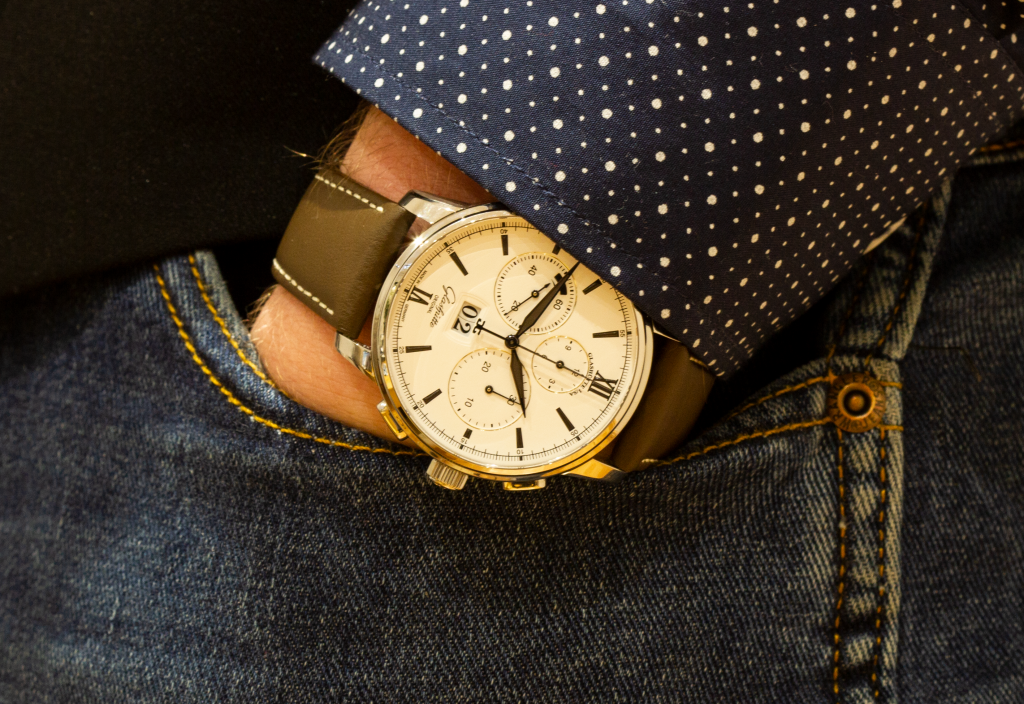 While testing this Senator Chronograph, I put it through its paces when it comes to dress styles. I don’t have the most remarkable or outlandish wardrobe, but what I do have are clothes for pretty much every occasion, which I wore at some point with this watch to see how versatile it is. Long story short, it handled everything with ease, even a relaxed business suit with larger cuffs works, though I’d hold off for anything like evening wear or black tie, the white dial does it a favour, but it’s just too large to be unnoticeable. No, what this is suited to is smart casual, a polo shirt or maybe a nice button shirt worn with some quality jeans, like Wrangler or Lee. This daily wear brought out the versatility of the watch, even on the brown leather calfskin strap which I thought would be difficult to pair. For the photoshoot where you see me, I took it a step further and added a black waistcoat over my long sleeve shirt, the watch didn’t look out of place here either, in fact, it was in its element.