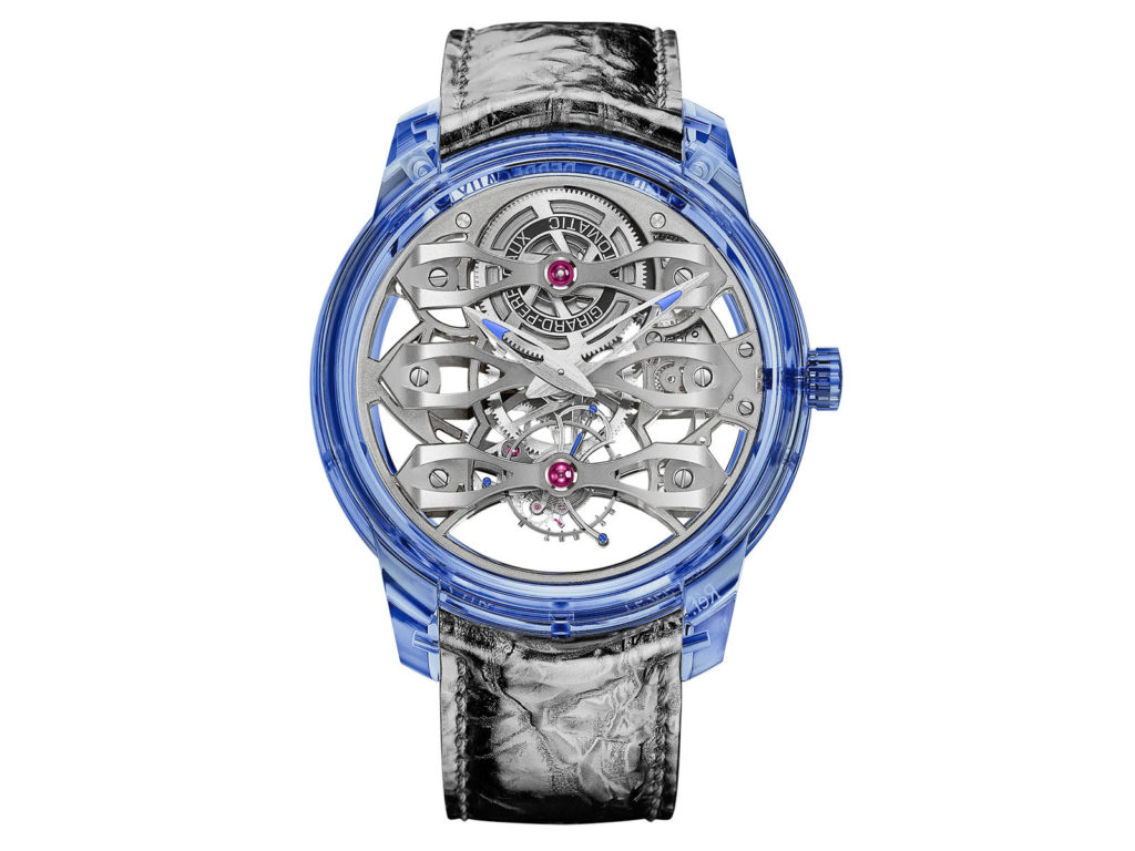The Quasar was presented last year as a summation of everything that Girard-Perregaux could do, with a complicated movement featuring a tourbillon housed inside a case made of solid sapphire crystal. To go one up on itself the brand is presenting the Quasar Azure for 2020, can you guess what they changed?