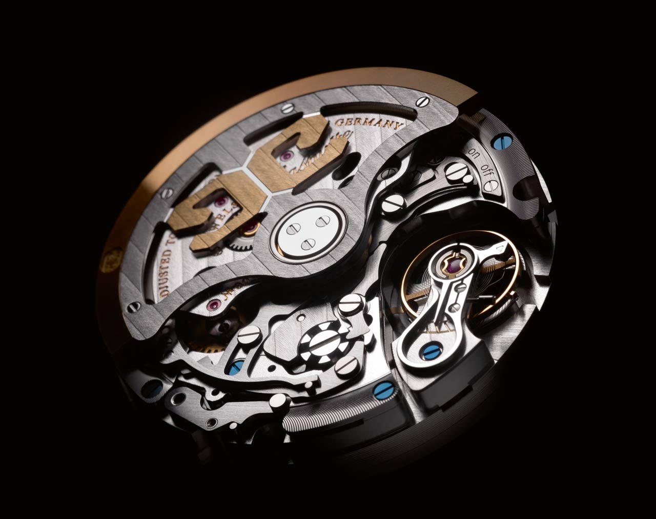 One important factor about this watch is the movement; it’s been executed in-house. In the traditional German way, the movement has been mostly covered by a three-quarter plate, leaving only the automatic winding rotor and the balance with swan’s neck regulator exposed. Also adding to the complexity of the movement is the column wheel chronograph which records up to 12 hours, and a power reserve as well. There’s also the big date which we particularly love seeing on Glashütte watches because they get it right, there’s no slight difference in depth between the two numbers. It’s also got 70 hours of power reserve, but given that this watch is an automatic winder I’d be surprised if it were allowed to stop.