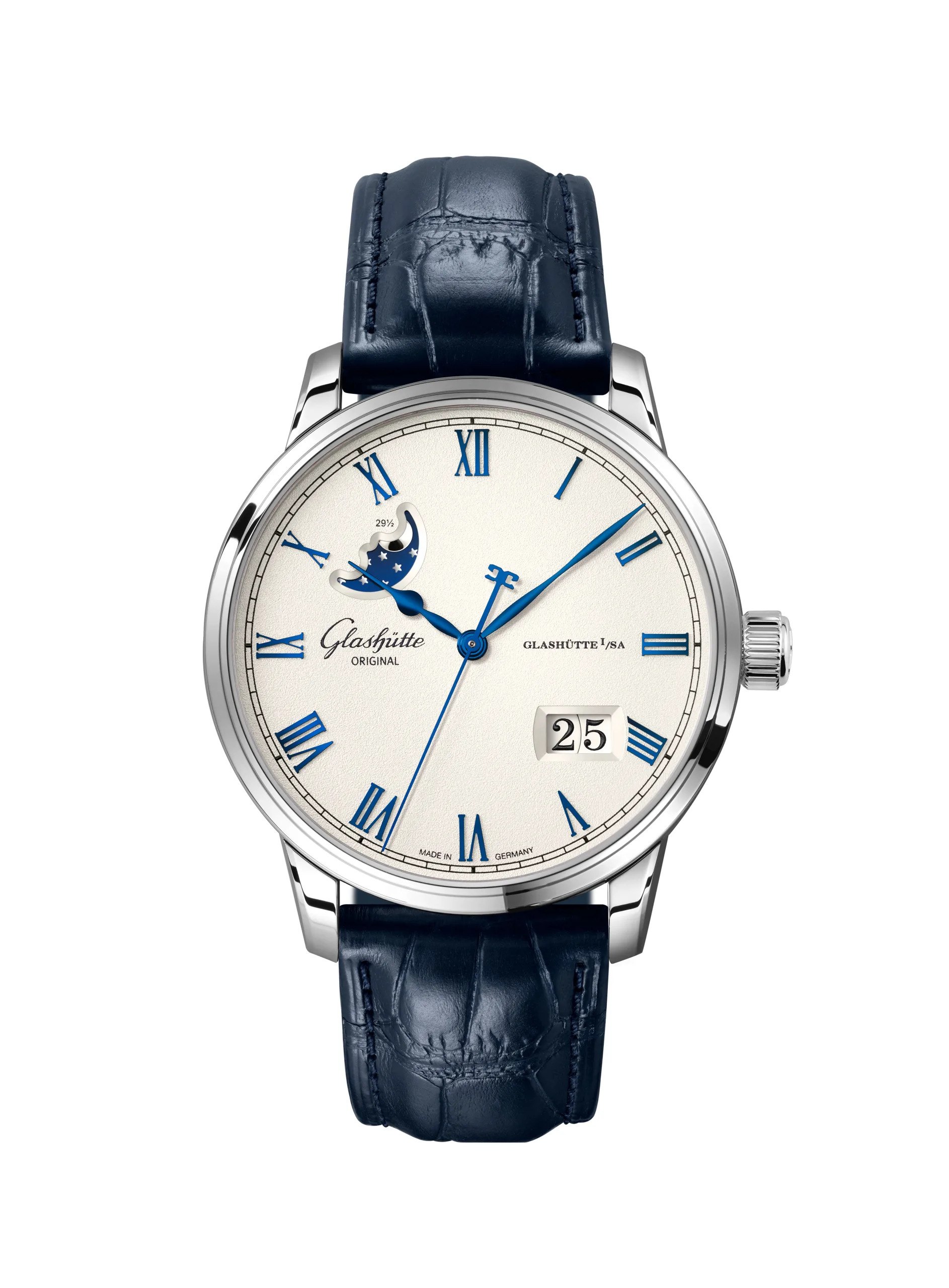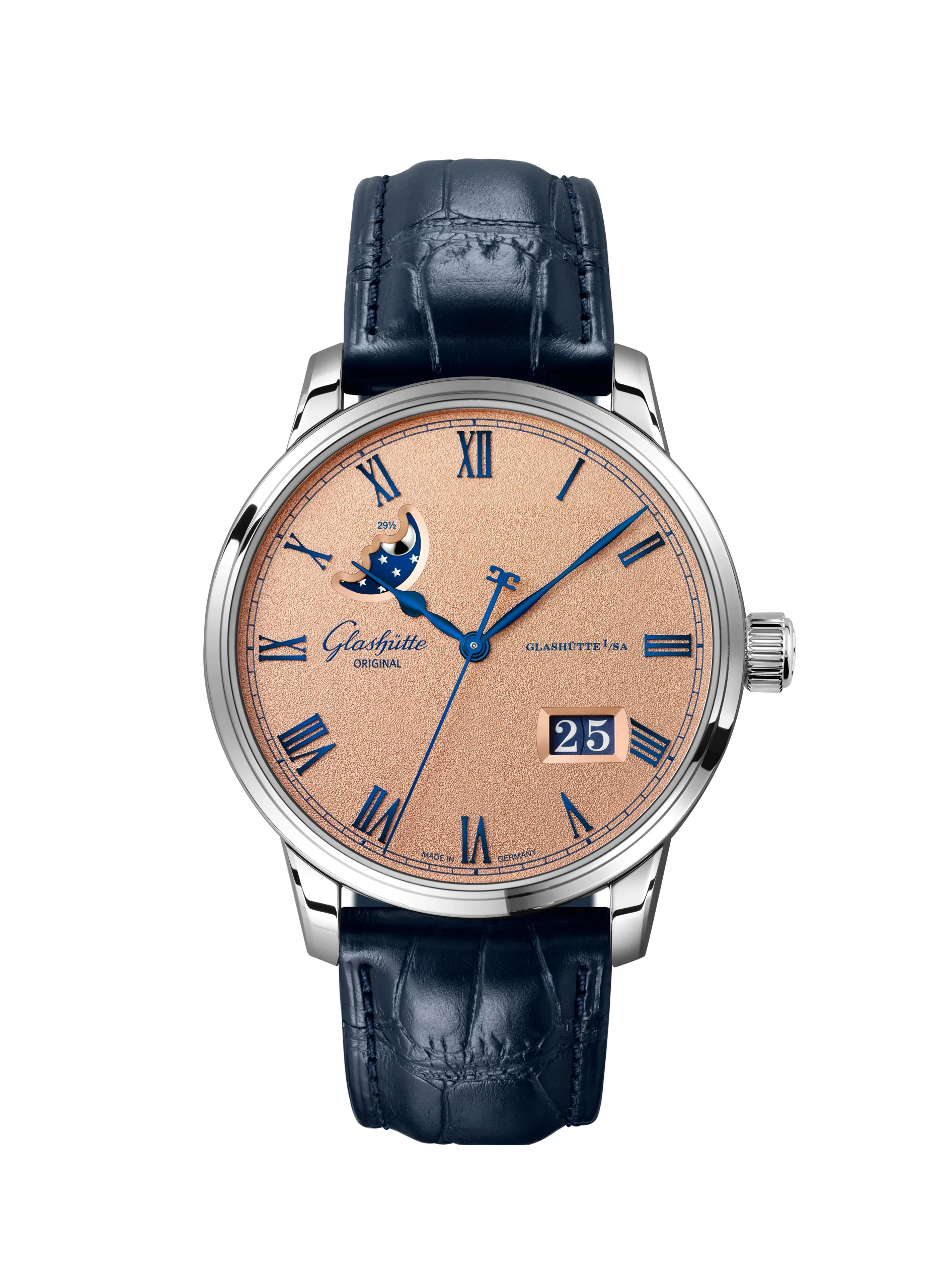 As for the strap you got options, both the “frosted silver” and “frosted copper” variants are paired with a dark blue Louisiana alligator leather strap; classic and dressy; with the additional option of a blue synthetic fabric strap that feels a bit more casual and sporty without going overboard. Both straps fasten with either a pin buckle or a stainless steel folding clasp. Price-wise, you’re looking at a price bracket which firmly places it in the high-end luxury segment. Availability is through Glashütte Original boutiques and authorized retailers.