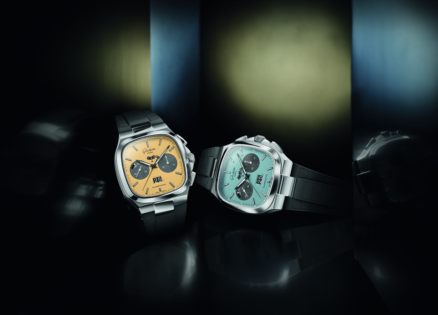 Renowned for its rich horological heritage, the renowned German watchmaker Glashütte Original has a long and storied history. Among Glashütte Original’s proud history are the fondly remembered 1970s, as well as its inspiring Seventies collection. The Seventies Chronograph Panorama Date collection is a line of watches from Glashütte Original that pays homage to the 1970s. The watches in this collection feature a modern take on classic chronograph designs, with vibrant matte lacquered dials, self-winding movements with long power reserves, and stainless steel bracelets or rubber straps. Now Glashütte Original has released two new limited-edition versions of its popular Seventies Chronograph Panorama Date, the Golden Bay and Ocean Breeze.