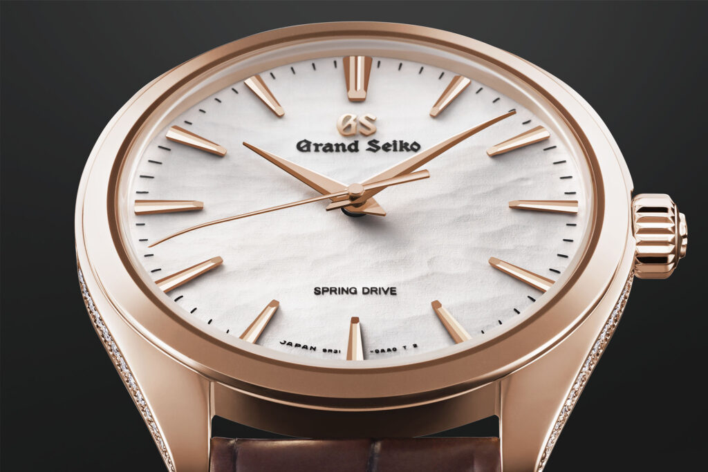 A short while back, Grand Seiko unveiled the SBGY007, a Spring drive powered watch featuring a stunning dial inspired by the frozen waters of Lake Suwa that brought a big smile to the faces of Spring Drive enthusiasts. Why so? you might ask. Well, because the SBGY007 is the first widely available non-limited Grand Seiko powered by the Caliber 9R31, a Spring drive movement, that is not only better finished than a regular Spring drive movement but also features the power reserve indicator on the movement side, making the dial look cleaner when compared to regular Spring drive watches that feature the quirky power reserve indicator on the dial itself. Now, Grand Seiko has revealed the new SBGY008, a new elegant wristwatch fully clad in gold and diamonds featuring yet another nature-inspired dial.