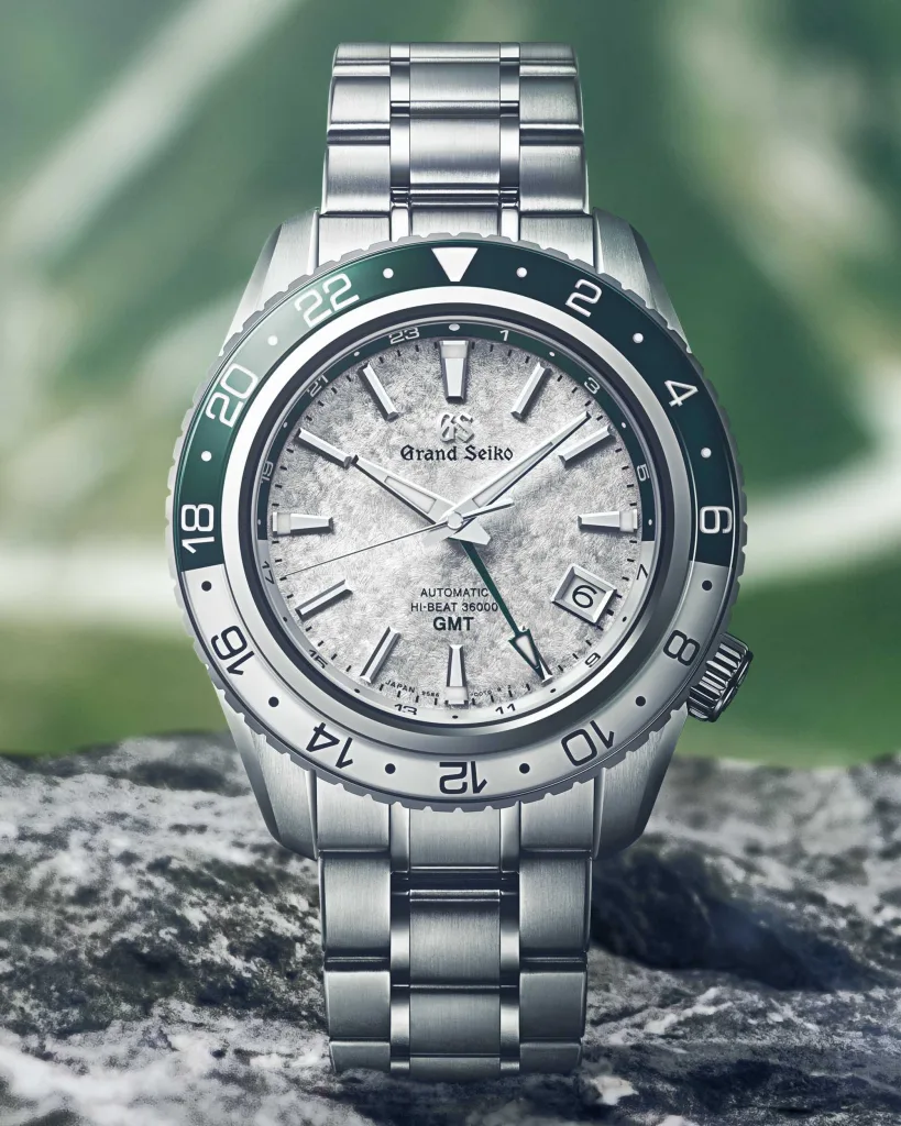 For those who crave both style and functionality, the SBGC275 Sport Collection Spring Drive Chronograph GMT ($13,400 USD) is the ultimate all-rounder. This chronograph boasts Grand Seiko’s Spring Drive technology for smooth operation and exceptional accuracy. The built-in GMT function lets you keep track of home time while conquering new adventures, all housed in a robust yet lightweight “high-intensity titanium” case.