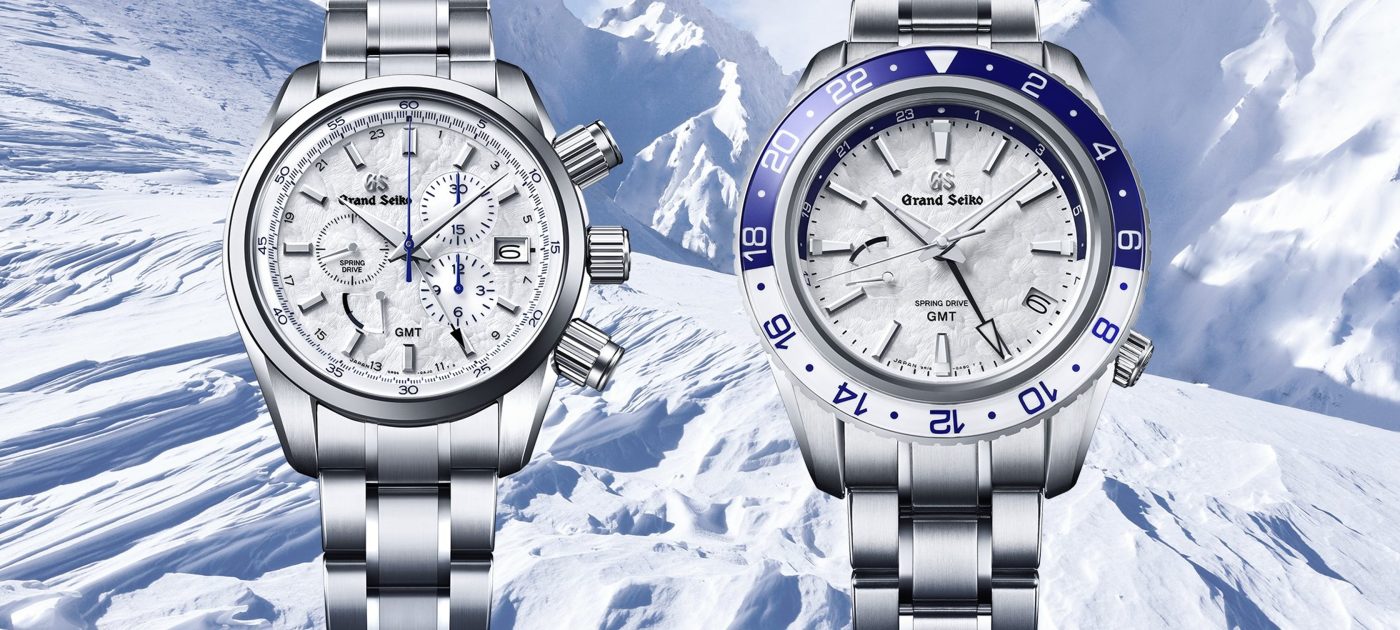 Grand Seiko is well known for emulating the Shinshu winters on its dials and this new pair of limited edition sports watches is no exception. We have a GMT and chronograph GMT that celebrate two different anniversaries – the 20th anniversary of the first Grand Seiko GMT and 15th anniversary of the Spring Drive Chronograph. Textured dials have become a hallmark for the brand and winter/snow is a common theme. Shinshu, Japan is where Spring Drive watches are produced and the atelier is surrounded by snow-covered mountains. Perfect inspiration.