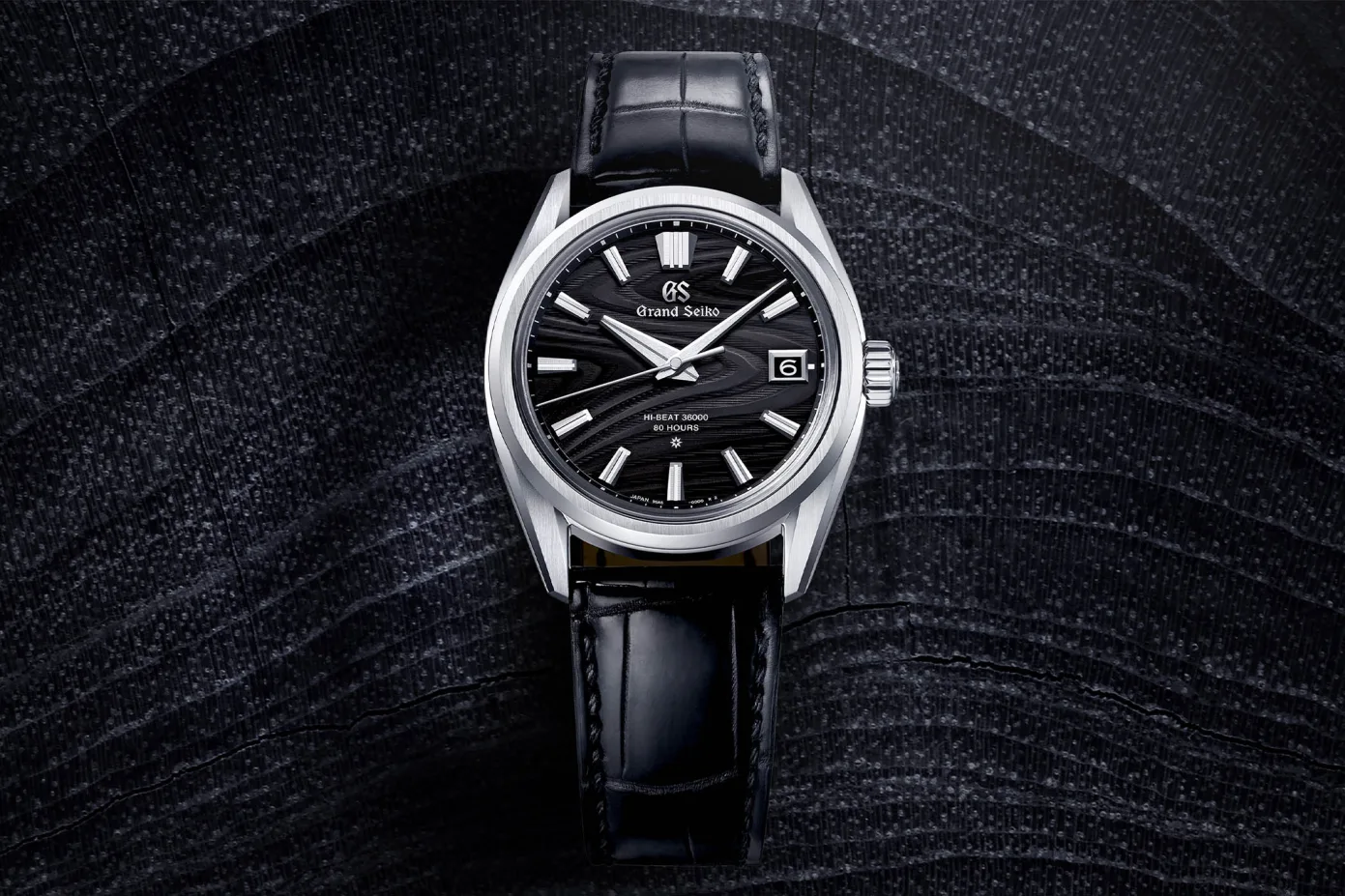 The new Grand Seiko Heritage Calibre 9SA5 Platinum SLGH007J features a smart-looking case that is not too vintage-y in its design (although it actually is influenced by previous models) with relatively short lugs that flow from the shape of the case. Its dimensions are 40mm x 11.7mm, and it’s made from platinum, hence the name. The dial of the case contrasts nicely with a black backdrop to an elegant finish that mimics the wood grain. The hands and markers are made of 18k white gold and feature many textures and surfaces to give them an intricate appearance at a glance, although I find the hour hand to be a little too wide. Grand Seiko has also added a date window to throw the balance of the dial off.