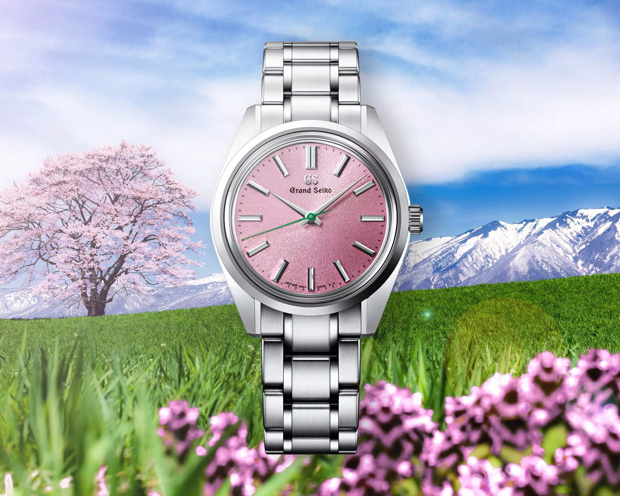 The new 44GS Midsize Watches retain the signature case design of their predecessors while introducing fresh dial colors and patterns inspired by Mount Iwate’s seasonal splendor. Their 36.5mm x 11.6mm stainless steel cases feature sharply angled lugs and a box-shaped sapphire crystal, echoing the classic 1967 44GS.