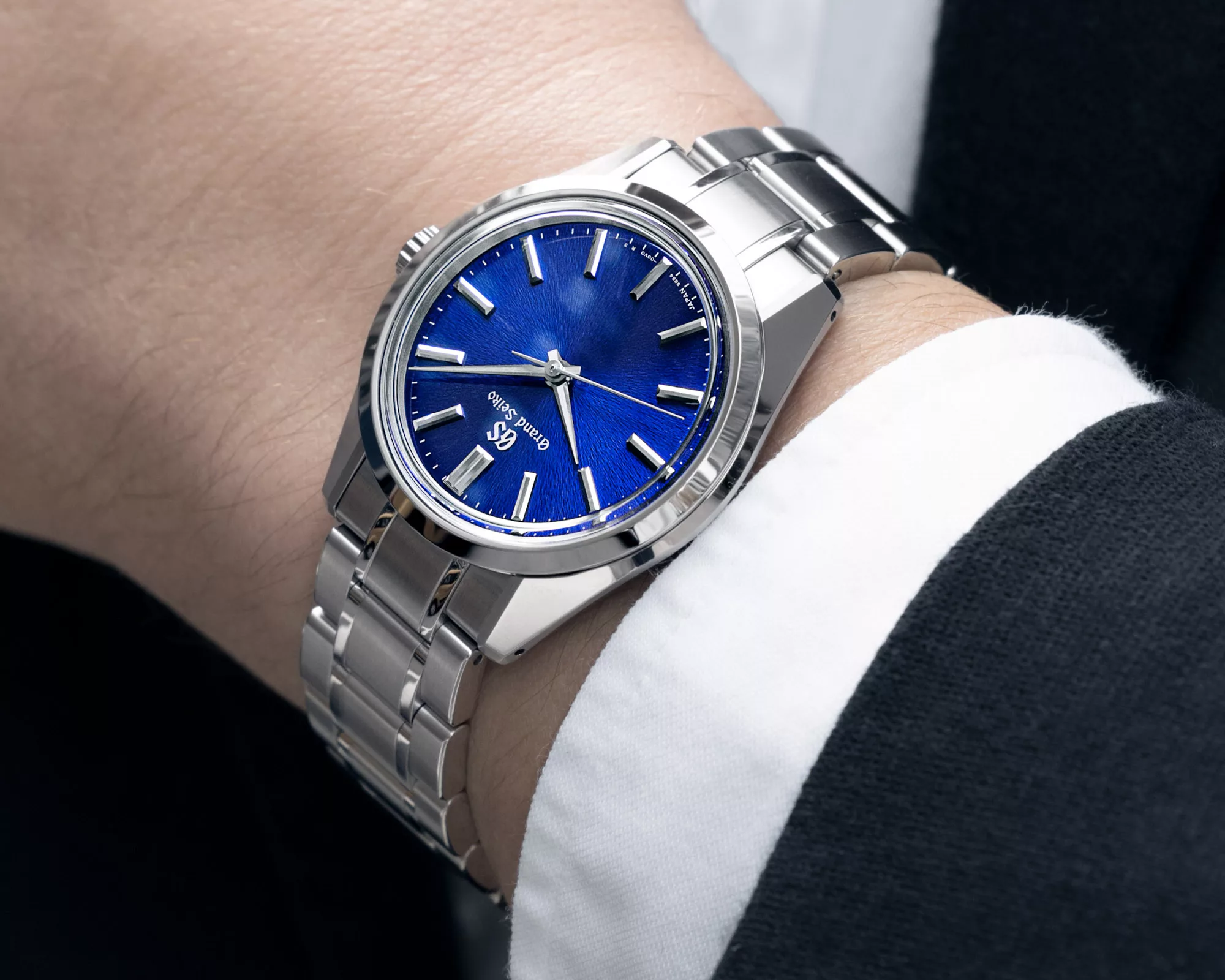 The dials serve as centerpieces, featuring a clean, time-only layout with baton-style markers. They are adorned with Grand Seiko’s signature “Mt. Iwate” pattern, a unique radial texture inspired by the ever-changing landscape around the majestic mountain. Enhancing the dial’s elegance are dauphine-style hands, subtly differentiated in finish to complement the respective dial colors.
