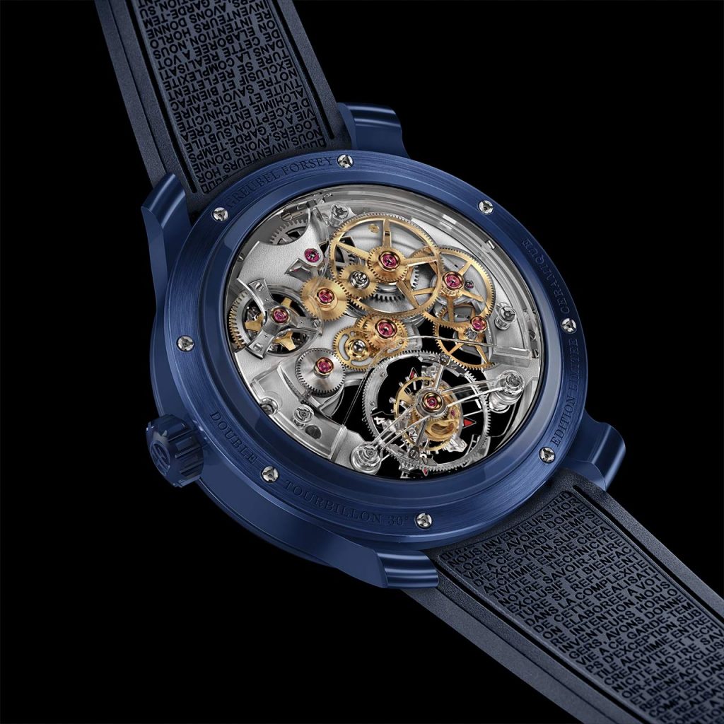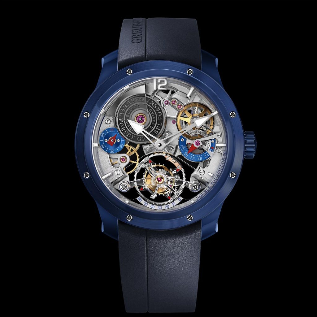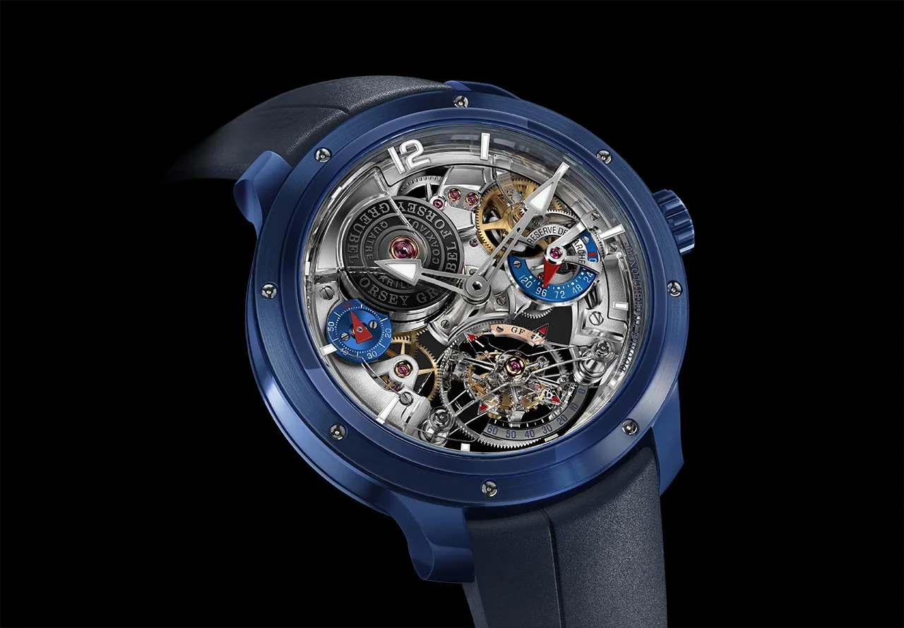 This line from Greubel Forsey has been around for 15 years. That’s right, the Double Tourbillon 30° Technique made its debut in 2004 at the Baselworld fair, and in that 15 years, we’ve seen quite a few different variations of the watch. This is, however, the first time we’ve seen it done in blue ceramic. This is a case (no pun intended) of exceptional horology, and we’ll get to that in a moment, but it should be noted there is one downside to this watch for most people: the case’s size. It’s 48.4mm in diameter and 17.8mm thick, making it too large for some. Luckily, heft won’t be a problem, as the ceramic case is undoubtedly light.