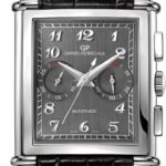 The gold dial is finished in shades of grey, anthracite and black, with the two black minute rings positioned concentric around the satin-finished hour display, with applied polished white gold hour indexes. The hands and indexes are in harmony with their case – white gold or in red gold, depending on the version. For ideal legibility at night, the tips of the hour and minute hands have been filled with luminous material.
