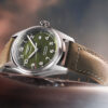 To contrast the sunburst fumé dial, the small second hand at 6 O’clock is accented in red. Not forgetting details such as the date disc which has been hand-written by the children of Moser’s employees.