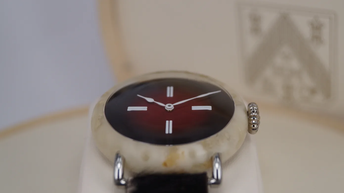 Fast forward to SIHH 2017 and H. Moser finally revealed the most Swiss watch ever, the H. Moser & Cie Swiss Mad (yes that is mad as in insane or crazy). As you will probably immediately notice from the photos, the case is not steel. But what is it? Is it marble? Is marble typical Swiss? No. It’s cheese. The case of the Swiss Mad watch is made of Swiss cheese. The idea was that since the watch needed to be 100% Swiss Made, the case couldn’t be made out of steel, because that steel would most likely come from somewhere else. So to make sure the watch case was Swiss Made, and to be sure to generate a lot of attention, H. Moser made the case out of Swiss cheese. The cheese has been processed and other materials have been added in to create a hard, non-smelly and rugged case.