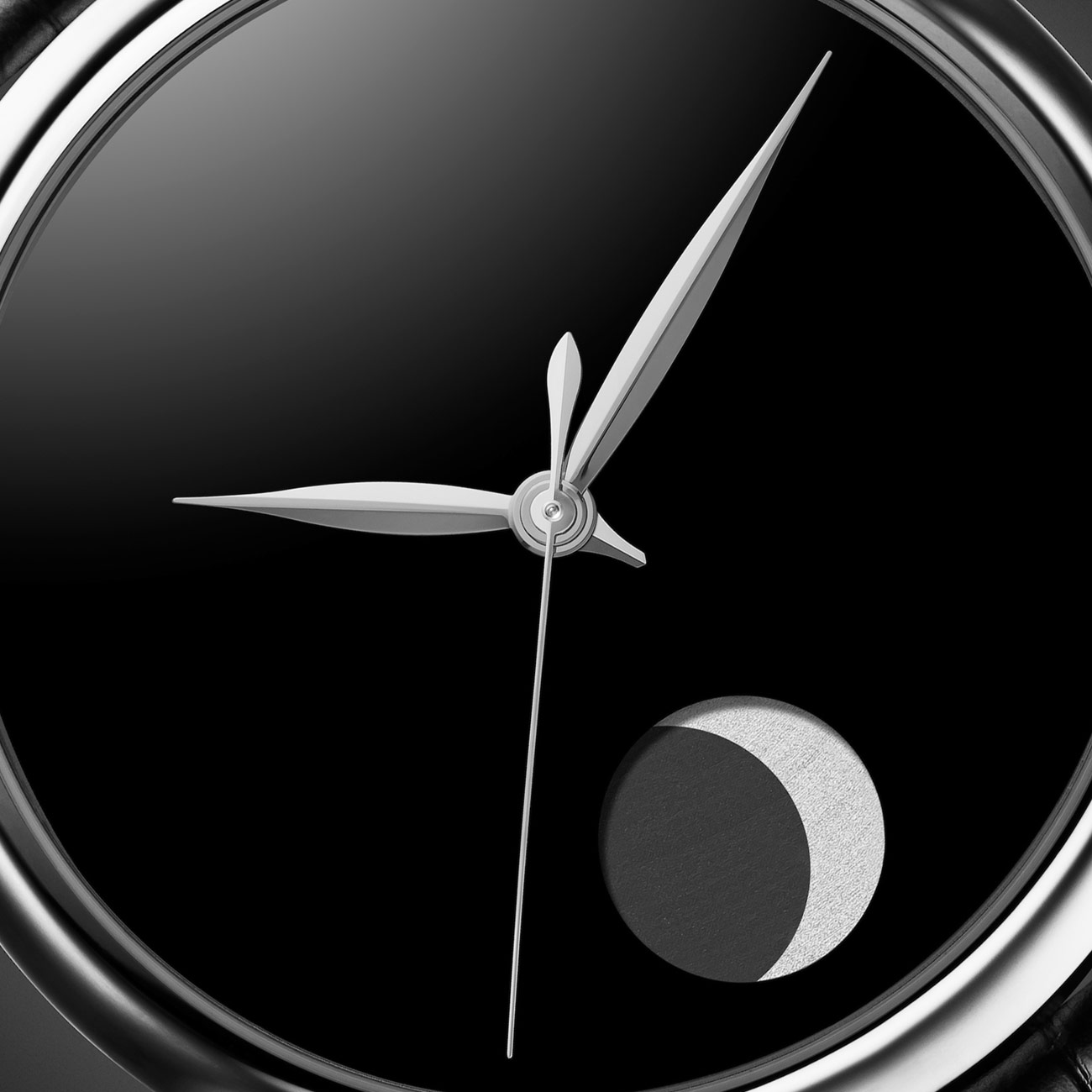 The Perpetual Moon Concept watch comes in two variations, steel and rose gold. The steel one is perhaps more appealing to me for a few aesthetic reasons. White metal is currently the “in-thing” when it comes to fashion, it’s more discreet and easier to pair with outfits. The steel itself is also rugged and less likely to scratch than gold. Finally, and most importantly, the dial of the steel version is made of Vantablack®. Vantablack® was first developed in the UK’s National Physical Laboratory, the same laboratory that made the first accurate atomic clock, and the name is an acronym of Vertically Aligned Nano Tube Arrays, followed by the colour black. It is the darkest artificial substance known to man as it absorbs up to 99.965% of visible light radiation. This makes it ideal for a watch dial, though, in order to distinguish the moonphase clearly the dark portion of the phase is painted black instead. Very few brands play around with things like Vantablack®, though it is something we’d expect from a company like H. Moser & Cie, to do things just that little bit differently.