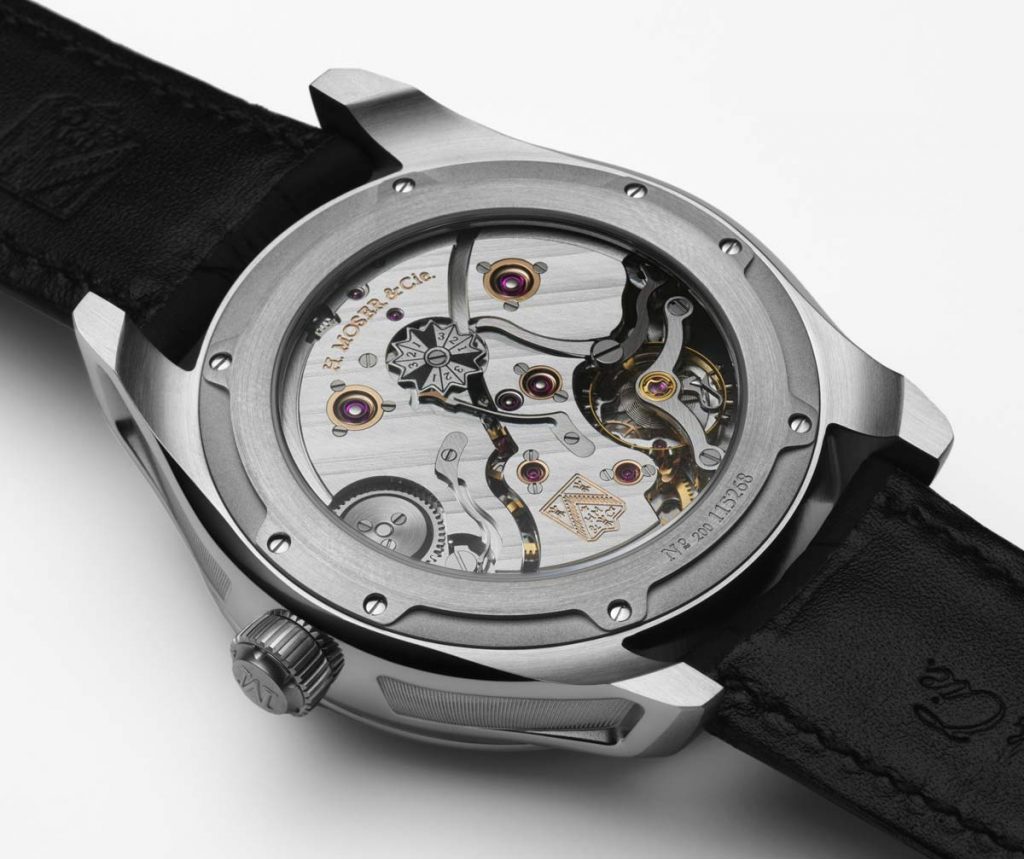 The Pioneer also sports an exhibition case back made of curved sapphire crystal. From here one can look at the HMC 800 calibre beating at 18,000 vibrations per hour and cranking 7 days worth of power reserve for a minimum. The H. Moser perpetual calendar calibre is a refined beauty and I really admire its utter simplicity. As you know I am a sucker for minimalist stuff that pretty much equates to being extremely well. Oh and the Pioneer is water resistant down to 120 meters, now that is a very practical Perpetual Calendar wristwatch indeed.