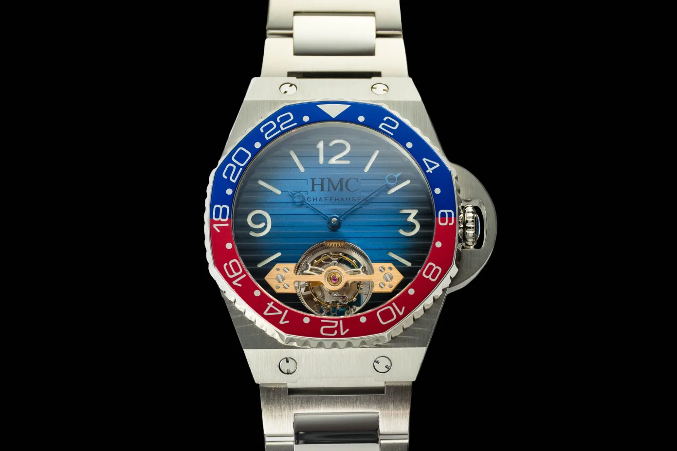 H. Moser have spent the last few years acting as a sardonic Greek chorus by commenting on, and making fun of, what they see as being wrong with the watch industry and the newly announced Swiss Icons Watch is a defiant middle finger to the plague of influencers, brand ambassadors and re-hashed anniversary models. The Swiss Icons is a horrifying amalgamation of some of the most recognizable watches ever made: it has the Pepsi bezel of a Rolex GMT Master but in the shape of a Royal Oak bezel, a Hublot-esque case with the crown guard of a Panerai and the crown of a Cartier, the dial of a Nautilus but the hands of a Breguet, the logo design of an IWC and the numbers of a Panerai.