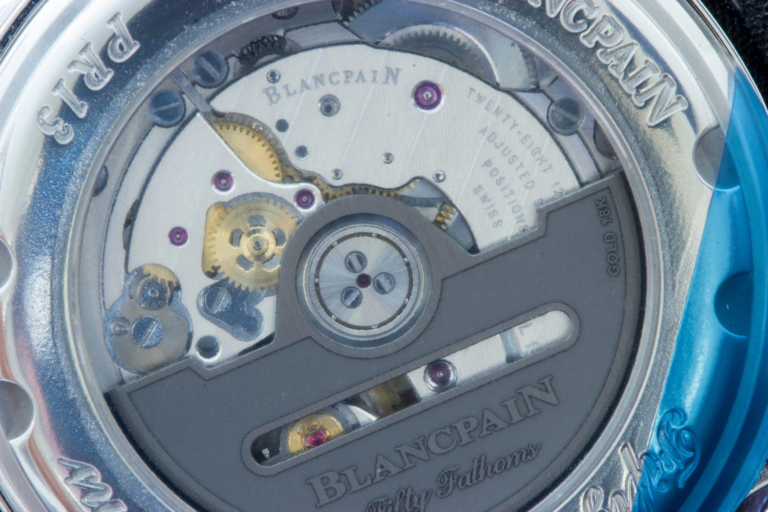 Around the back is the automatic Calibre 1151, a movement visible to the user but obscured slightly by protective plastic for us. I was a little surprised that there wasn’t the characteristic nautilus rotor like we’ve seen on other Fifty Fathoms watches, and I miss it in this case. The power reserve is 100 hours and, as you guessed from my photos, there is no hacking for the balance. Blancpain’s known for solid movements, and this is undoubtedly another one.