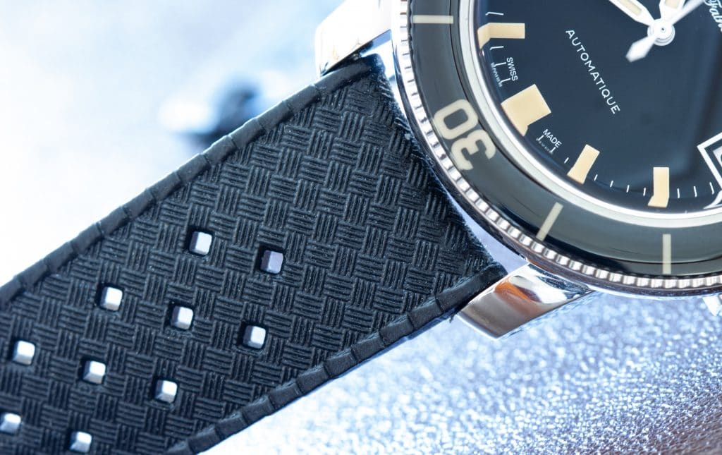 Finally, the rubber Tropik strap is slim and flexible. Compared to some straps I’ve tried, it’s extremely bendy, which means it fits the wrist well. Just bear in mind that the pattern on the strap means it will collect dust fibres and dirt quite easily when worn as a daily. The cost of this one will be $14,100 and, like the Air Command, the Fifty Fathoms Barakuda is limited to just 500 examples worldwide.
