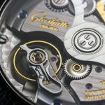Inside the watch is the very aesthetically pleasing Glashütte Original calibre 36-04. This movement is very similar to the calibre 36-03, except for the added moon phase. The 36-04 is in-house designed and built, and is gorgeous to view. The top of the 21k gold rotor with double G logo is striped, along with the top of the traditional Glashütte 3 quarter plate, another hallmark of the region. The top of the balance cock has also been striped, while the swan’s neck regulator has been polished. The wheels have been given a very high-quality sunburst polish, and the track for the rotor has been decorated using a milling process with an attractive ribbed design that reflects light very well indeed. If I had to add my thoughts on it, I love the design but would like to see a hand engraving on the balance cock, Glashütte Original does such a good job on it that I feel this ‘Excellence’ model deserves that extra twist, but not having it does help to keep costs in check.