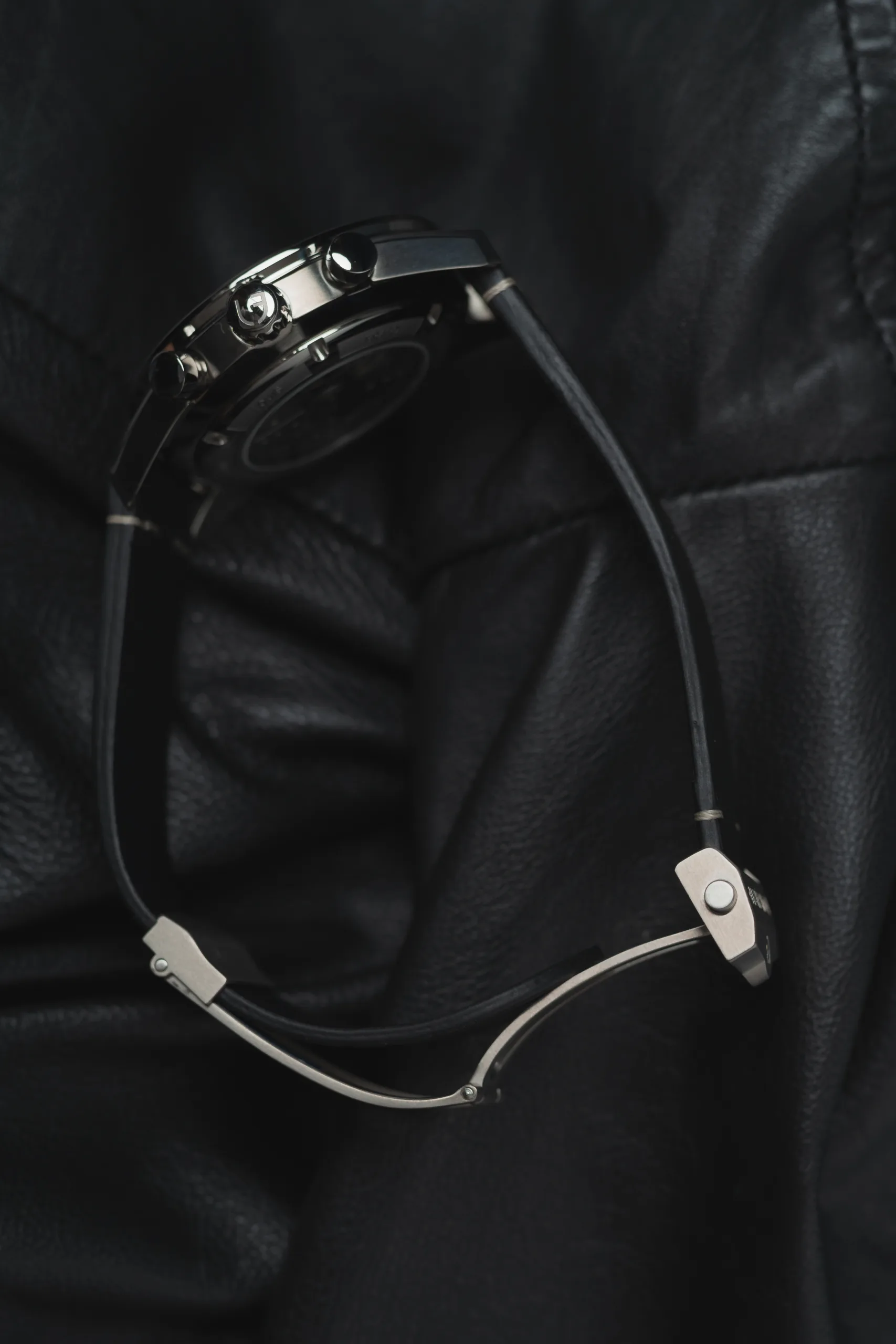 I firmly believe that no matter how beautiful the dial on a watch is, it is not worth your money if it does not manage to sit comfortably on the wrist, as that is where it belongs. And, before I get into the details, I would like to tell you that the La Sportive did not disappoint in this regard. The case on this watch measures 44mm in diameter and has a thickness of around 15mm. Now, as the dimensions suggest this is a fairly chunky watch that is best suited for medium/large sized wrists. However, Louis Erard has made some interesting design and material decisions to make it wear comfortably. First and foremost, the case on this piece has been crafted from grade 5 Titanium, which makes it very lightweight and ultimately makes sure that you can wear this watch for prolonged time frames without any botheration. Second and more importantly the case back on this watch has been slightly curved inwards which combined with downward curving lugs enables the watch to hug the wrist snugly. As we discuss how the watch wears, it would be good to talk a little bit about the strap as well. The watch is accompanied by a vintage looking Black calf strap which is soft and supple right out of the box and does not require any breaking in. The strap features a titanium folding clasp that is well machined and locks in place firmly inspiring a lot of confidence.