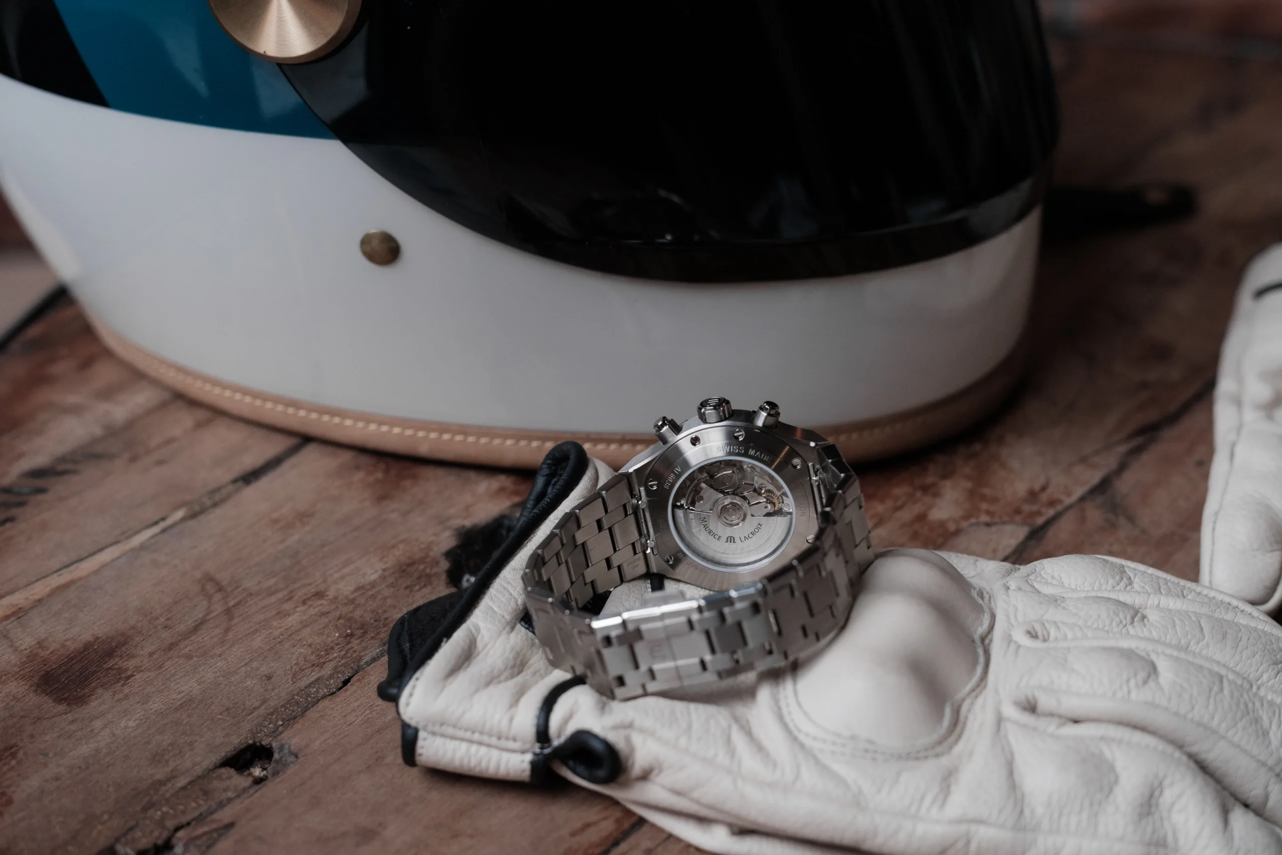 Powering the whole operation is the ML112 movement; a known quantity based on the tried and true ETA 7750 and its near-clone, the Sellita SW500. We’re talking 25 jewels, 4 Hz beat rate and a dependable 48 hours of juice. Maurice Lacroix has added some nice finishing touches here, with circular graining on the bridges and Geneva stripes on the rotor, all visible through the sapphire caseback. Is it haute horlogerie? No. But is it dependable, rugged and serviceable just about anywhere on Earth? Absolutely. And for a watch in this category, I’d take bulletproof over boutique every day of the week. The chronograph pushers have that familiar, tactile snap you expect from a 7750 family movement. Everything works with mechanical certainty; no mushy in-betweens.
