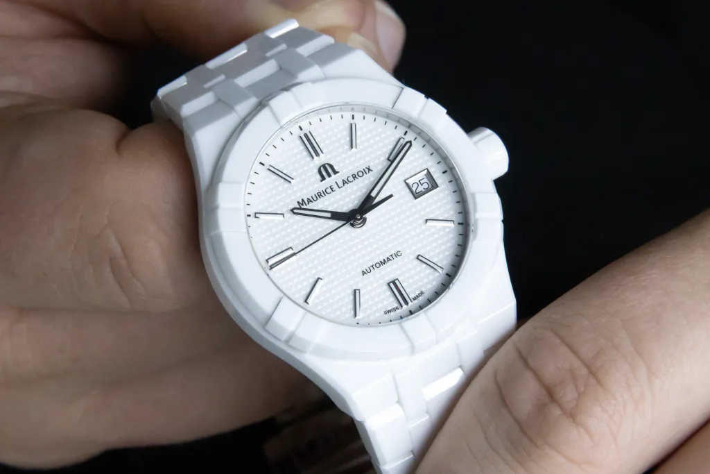 I have no reason to believe that it will shatter like glass when dropped, which seems to be a recurring comment whenever we talk about ceramic watches here. With that said, we have all seen photos and read horror stories of ceramic watches being cracked and damaged. I’d imagine the bill will be substantial for the Aikon as well.