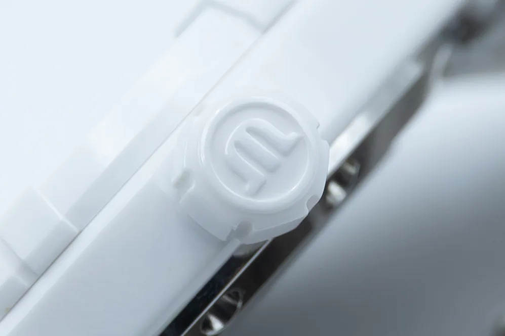 I think that the white ceramic case and bracelet of this particular Aikon are more interesting to look at. White has a lot of history and representation, with white chalk being used by the first artists over 17,000 years ago, being seen by Ancient Greeks as a representation of nourishment, of purity by the Ancient Romans (and others), virtue, of death and mourning, cleanliness, purity, and modernism. The point is, when you see something that’s predominantly stark white, you automatically make assumptions about it. White things can often be seen as contemporary, just take Apple products from 15 years ago when they first launched, or the sweeping open rooms (corridors?) of Space Station V in 2001: A Space Odyssey (1968). You immediately get a sense of what it’s about when it’s stark white.