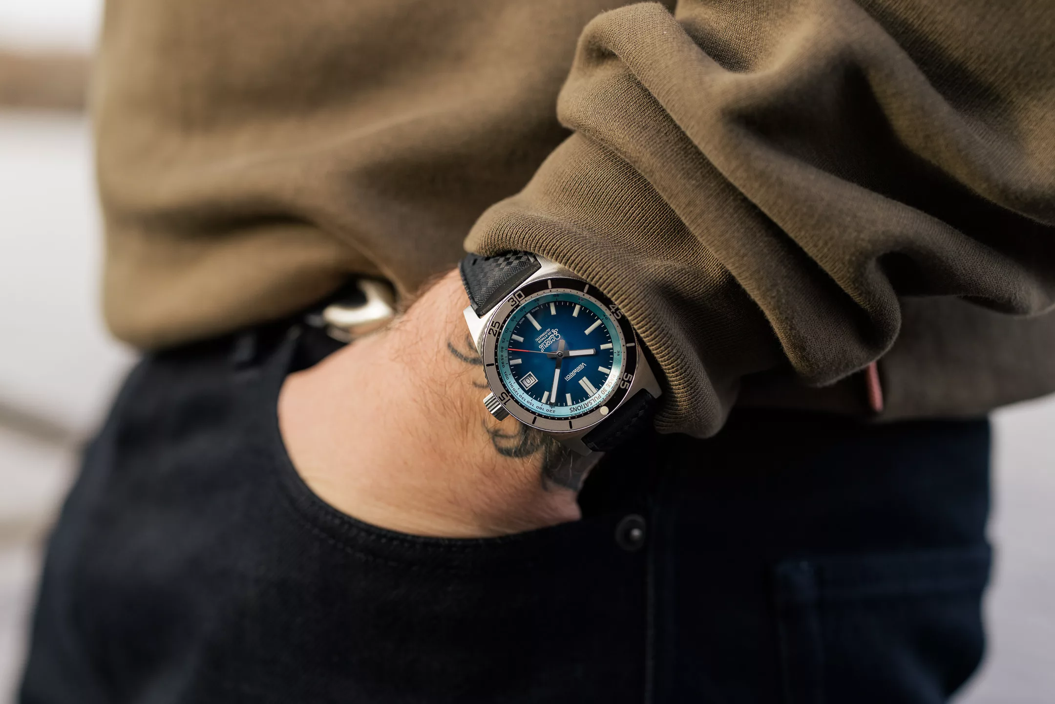Having previously reviewed the black dial model without date, I was initially intrigued by the VeriWatch Octopus 1973’s historical connection and one particular design element; the pulsometer scale. Now I find myself with a new companion; the VeriWatch Octopus 1973 with an eye-catching gradient blue dial and the added convenience of a date display perched at 3 o’clock. This iteration sings a different, and far more appealing, tune to my vintage-loving tendencies.