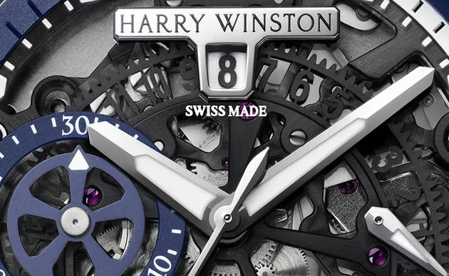 The Ocean Sport Chronograph, Harry Winston’s latest addition to their Ocean Sport Collection, is made to appeal to demanding costumers who love high-tech and performance. Carved in Zalium, a material unique to Harry Winston in watchmaking, this timepiece boasts a deep blue smoked sapphire dial revealing a sophisticated skeletonized chronograph module and sleek and ultra-modern contemporary design.