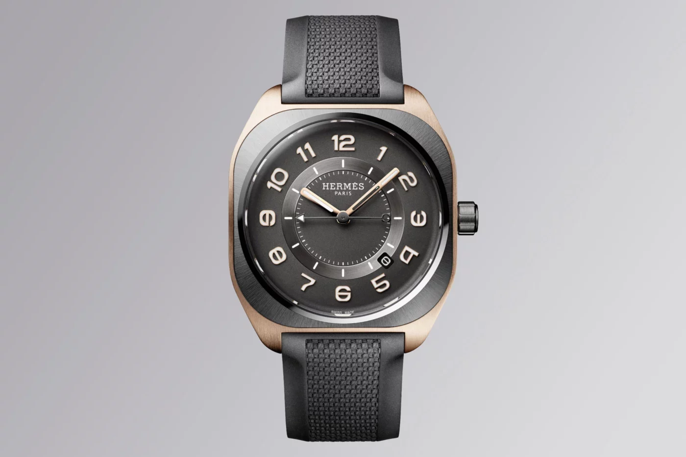 Hermès, one of the most iconic luxury brands going. It makes all sorts of lifestyle accessories such as shoes, gloves, belts, fragrances and jewellery. But, it’s probably most well-known for making scarves, leather handbags and luxury watches which are subject to much acclaim. It’s that last part that we’re interested in here at WristReview, and the new H08 in rose gold and black DLC titanium is something we’re very keenly interested in.