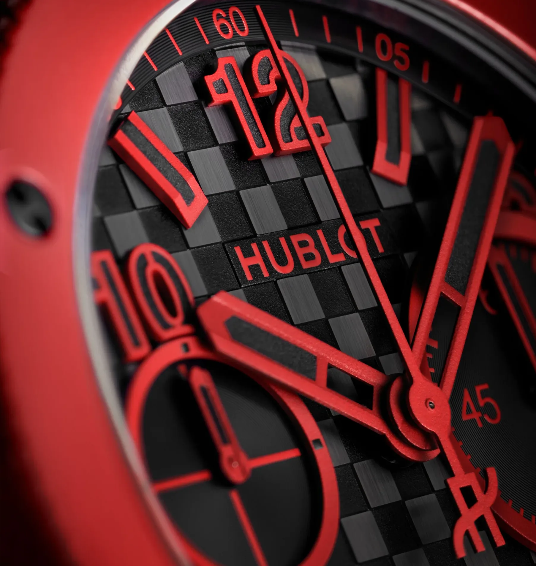 The case comes in at 43mm of polished red ceramic with a profile of 13.2mm, and it wears with that bold confidence Hublot knows how to deliver. The stamped chequered pattern dial adds real depth and shadow, shifting as the light moves across it, and it shows just how much Hublot has refined this style over the years. There is a layered look to it that keeps the watch from feeling flat, giving the Red Magic even more presence on the wrist.